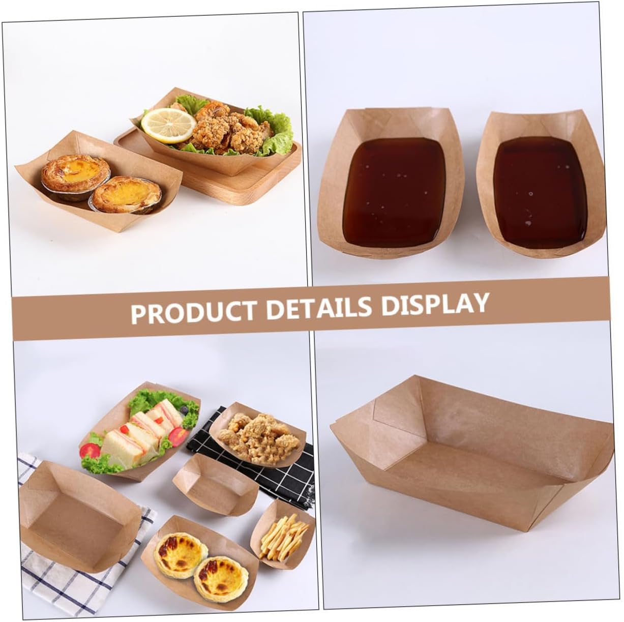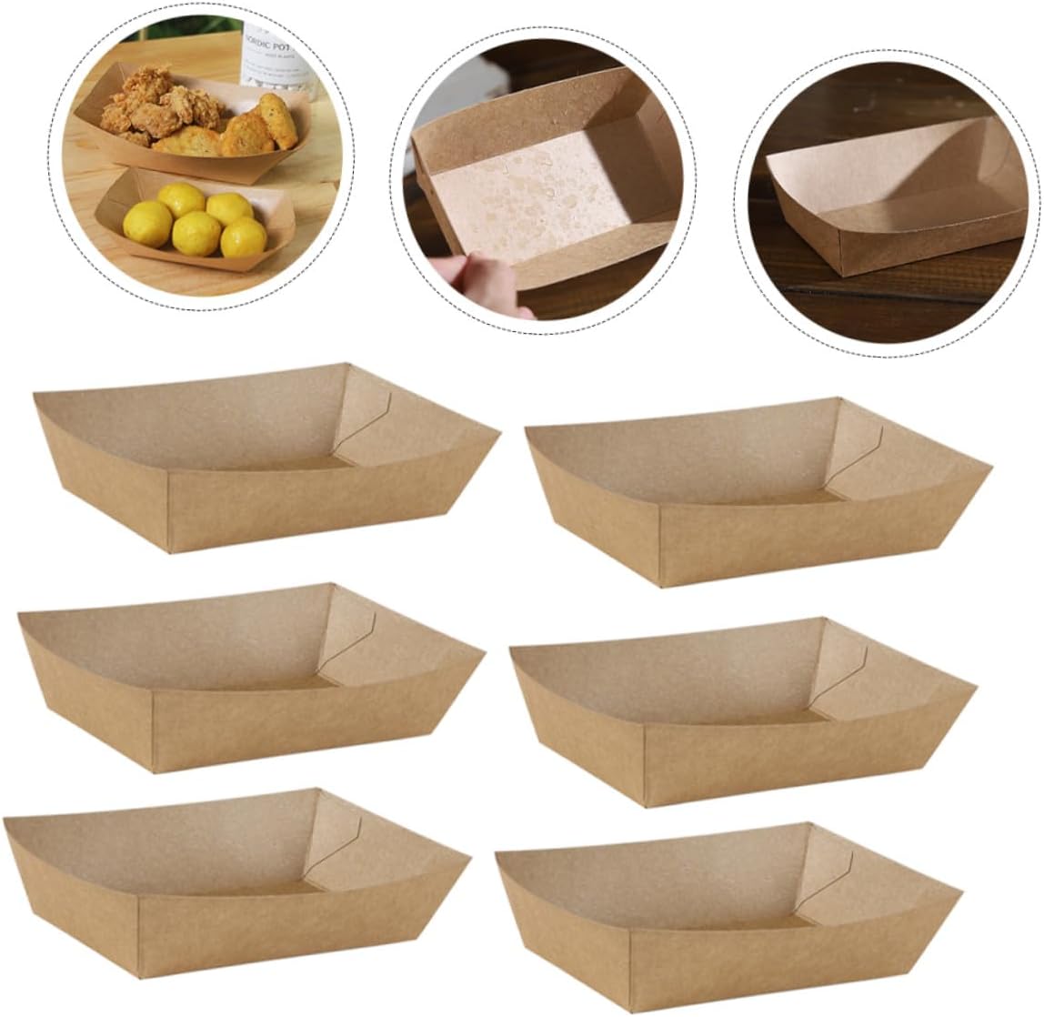 Package List Paper Food Boxes Features -Size: 20.00X15.00X4.50cm/7.86X5.89X1.77in -Product Info:Oil-proof meal box -Color: Khaki -Material: Paper -Using food-grade paper material, it can be in direct contacts with food, and it is safe and healthy to use. -It is very suitable for home kitchen, baking snack bar, party carnival, birthday, holiday and picnic snack containers. -The built-in film is waterproof and oil-proof to prevent leakage, which can bring you a better experience french fry boxes. -It adopts an open design, which is convenient for holding food, and folding design, which is convenient and practical fried food holder. -It can be filled with French fries, chicken popcorn, popcorn, fried chicken, cakes, etc takeaway food boxes.Goods Informationfood packaging boxes Essential packing boxes for food stores, restaurants.oil proof snack container A convenient way to put food at a birthday party or picnic, which is suitable for sharing with friends and family.takeaway food boxes Large quantity of paper food boxes are enough for daily use