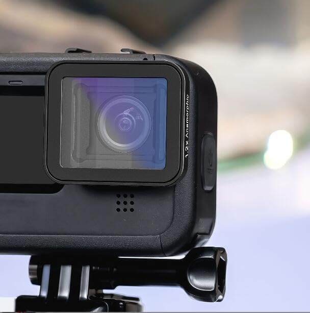 | Camera Lens | This 1.2X anamorphic lens for GoPro Hero cameras offers a high-definition, cinematic quality with a wider field of view and a unique blue flare effect in bright light. It is easy to install and made of optical glass with a high-definition coating, ensuring sharp images and realistic color rendering. |