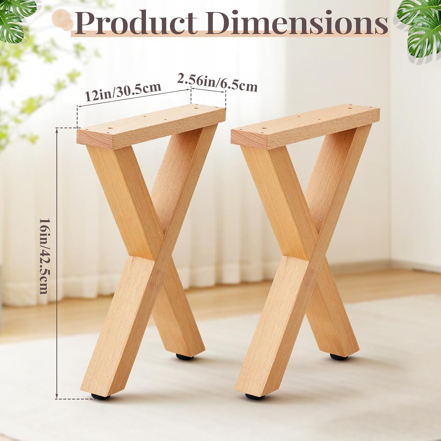 Features: Style meets functionality: The sleek brown finish of these wooden table legs complements any decor while the X-shaped design provides robust support and stability. They're not just functional. They're a stylish upgrade to your living space furnishings. Non-slip, floor-protective design: Equipped with four wear-resistant and anti-slip plastic corner pads, these wooden table legs are designed to protect your floors from scratches. Enjoy peace of mind as your furniture rests securely and safely in any room. Specifications: Material: Wooden Color: brown Size: as shown in the figure Package includes: 2 x X-shaped wooden table legs Notes: Manual measurement, please allow slight errors on size. The color may exist a slight difference due to different screen displays
