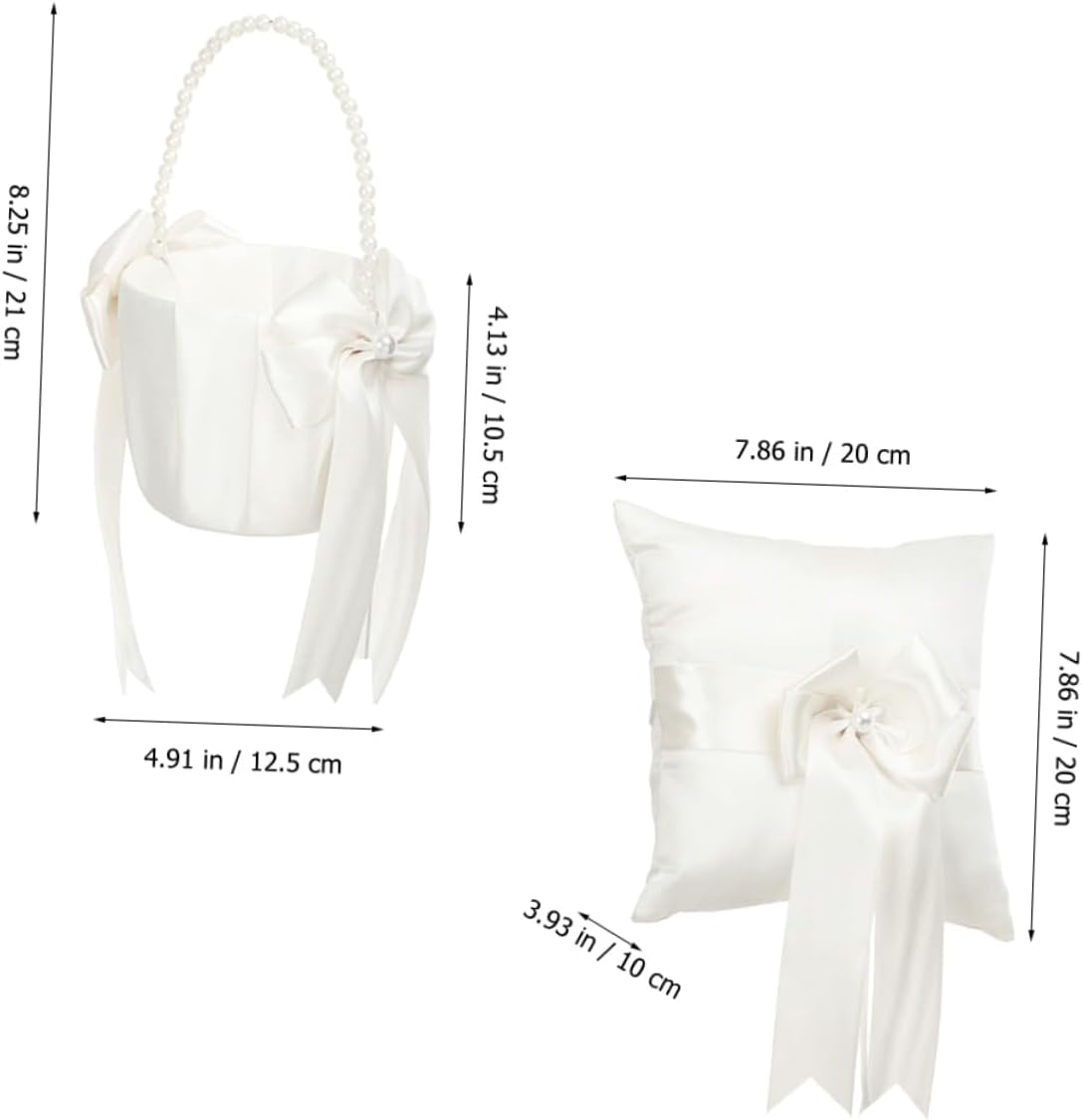 Package List 2 x Flower Basket 2 x Ring Cushion Characteristics - Size: 20.00X20.00X10.00cm/7.86X7.86X3.93in (cushion) Ring Bearer for Wedding - Size: 21.00X12.50X10.50cm/8.25X4.91X4.13in (basket) Wedding Basket - Color: As Shown cloth Ring Cushion - Material:PU, pearl, lace, cloth Flower Girl Basket - Must-have party accessories for wedding party, wedding anniversary, engagement party, proposal, etc Wedding Flower Basket. - This romantic ring pillow that will help you embellish your ring and make it more charming Wedding Ring Pillow. - The basket is not only just a container for holding rings, but also a charming decor for your wedding party Decorative Ring Cushion. - Featuring excellent craft, carefully down to every detail to give it an elegant and charming look Ring Pillow Bearer. - Safe and convenient to use, not easy to break or deform, reusable and can be applied for longtime Ring Pillow.Goods InformationFlower Girl Basket Are you looking for elegant, romantic and practical wedding supplies? Our products will be your choice.Wedding Ring Cushion Crafted with the finest craftsmanship for exceptional durability and practicality, this flower basket with ring pillow will give you a better experience