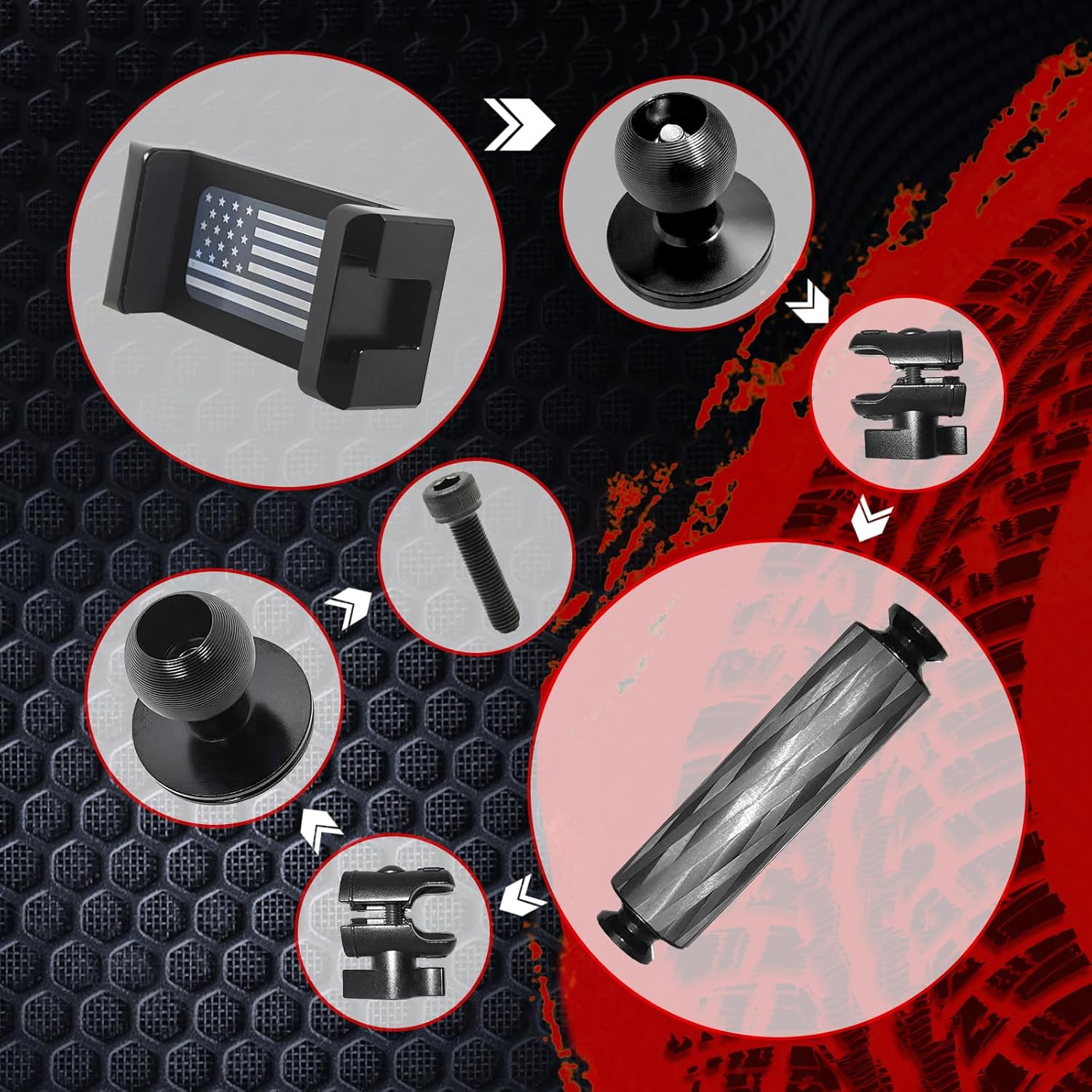 A newly upgraded 2021-2024 2025 Bronco 2022 2023 2024 Bronco Raptor Metal Dash Platform Phone Mount Phone Holder, you deserve to have! Are you looking for a sturdy, durable and secure phone mounting solution for your 2025 bronco phone mount 2024 2023 fo rd bronco phone holder ? The WXRYLYN 2025 bronco phone mount 2024 2023 for d bronco phone holder is a complete kit that provides safe access to your phone helps keep your car interior tidy and stylish. Our phone mount features a locking lever and butterfly knob design that keeps your phone securely in place without any lateral movement or risk of falling, even on rough terrain. One end of the phone clamp has a cold boot port, while the other end retains a 1/4-inch threaded interface to meet daily needs. Our universal spring phone holder accommodates widths from 2.5-3.4 inches and is compatible with most iPhone and Android phones. Please measure the overall width and thickness of your phone case to make sure it is no more than 3.4 inches wide and 0.5 inches thick.