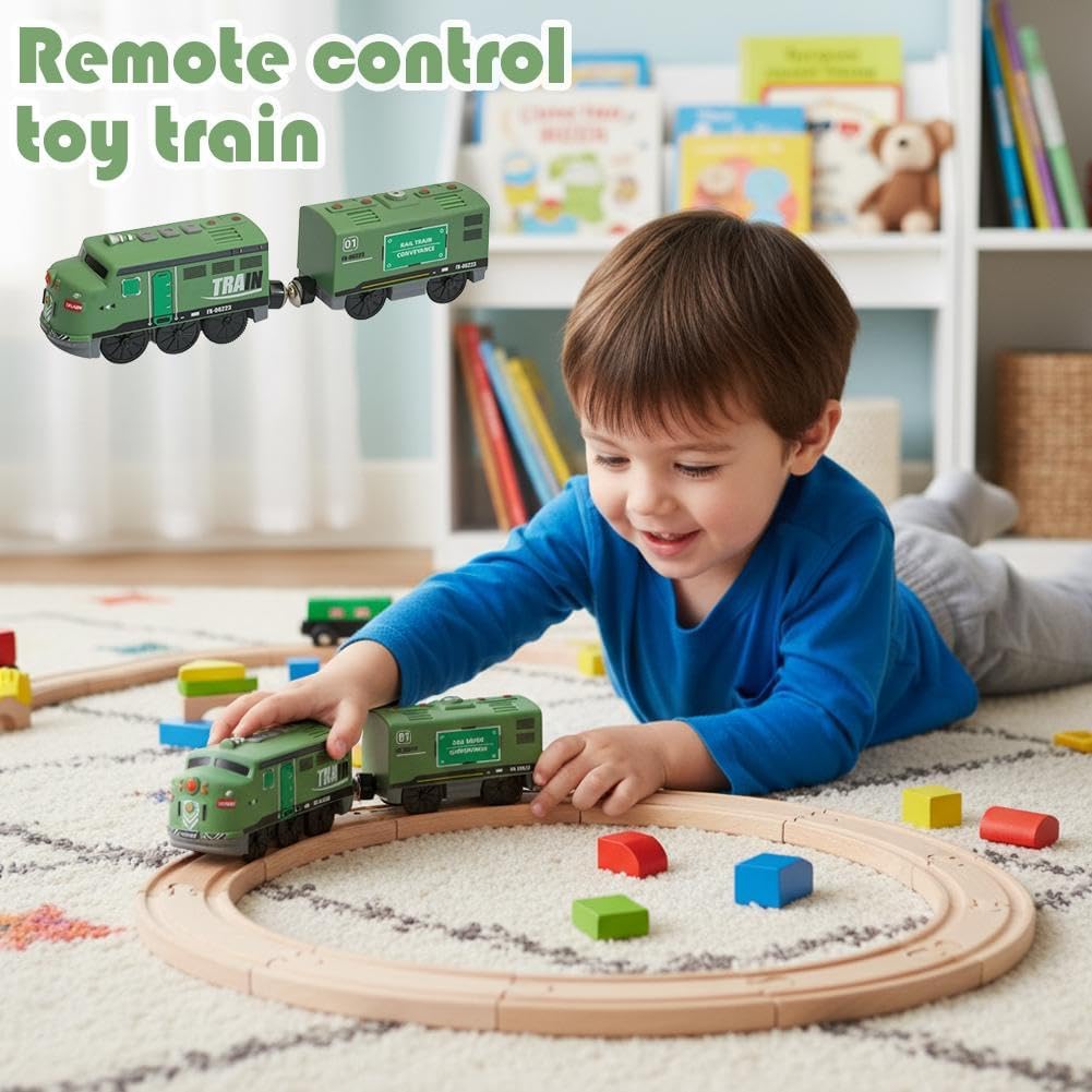 2026 Electric Remote Control Train Set for Wooden Tracks, Motorized Locomotive with 4 Sound & Light Effects, Interactive Toy Train for Kids Ages 3-5+, Boys & Girls