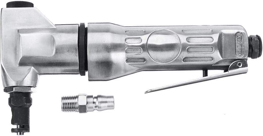 Specifications: Cutting Capacity(steel): 1/16" Cutting Speed: 2800 SPM Air Inlet: 1/4" Recommended Air Pressure: 90 PSI Air Consumption: 1/4" NPT Air Hose Size: 3/8" ID Length: Approx. 200mm/7.87" Features: Nibbles plastic, tin, aluminium and other metals up to 18 gauge rolled steel Precise lever throttle control Designed to allow cutting in the center of a panel Applicable to automotive sheet metal operations, sheet cutting and cutting of various metals Package included: - 1 x Air Nibbler - 1 x Air Connector - 1 x Manual