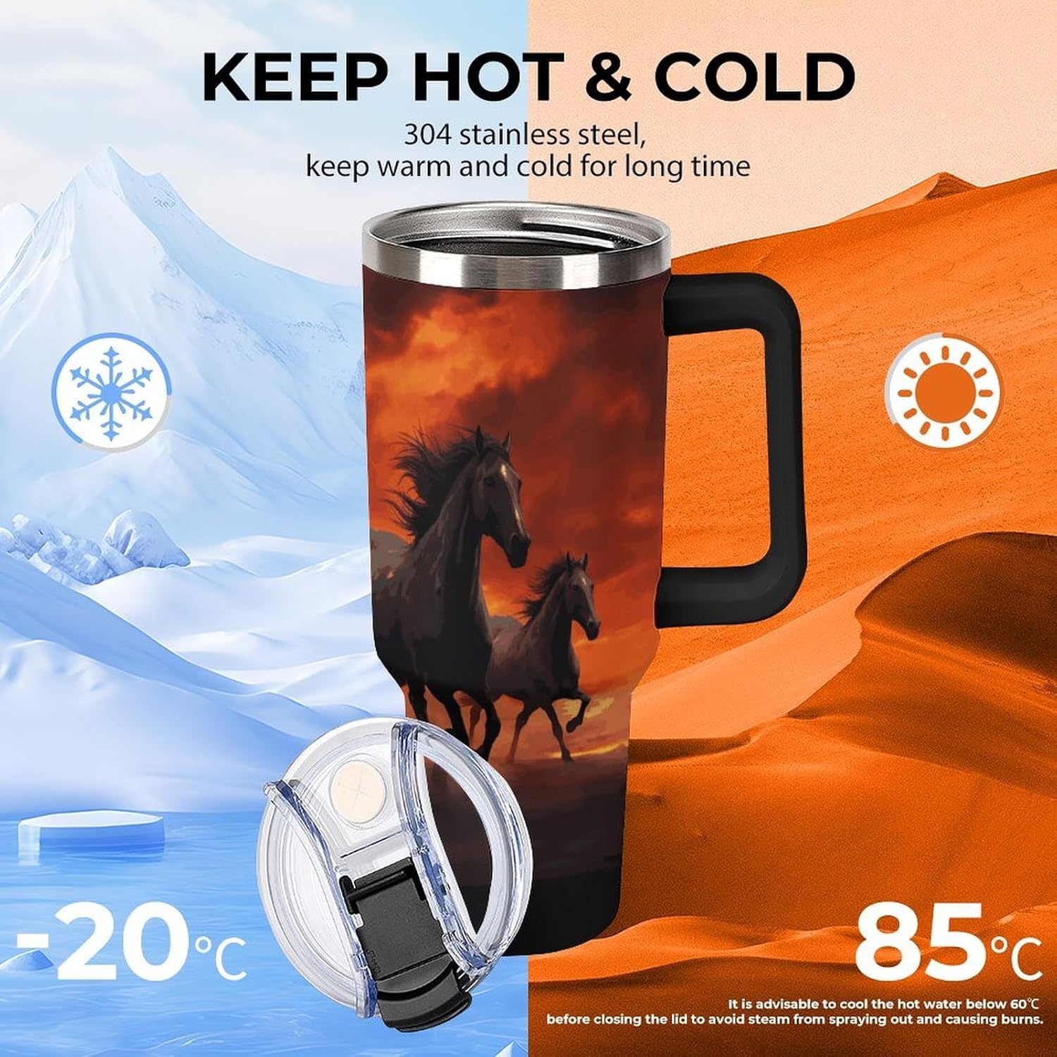 40 oz Tumbler: Keep Your Drinks Hot or Cold for Longer Perfect for long trips or days at the beach, this 40 oz thermal tumbler keeps your drinks at the perfect temperature for hours. The Tumbler is made from 304 stainless steel and fits standard cupholders, and with a variety of pattern options, you can get an Emotional Support Water Bottle. Its double-wall stainless steel design ensures optimal insulation, while the leak-proof lid prevents spills. Plus, its 180-degree rotating handle adds convenience and practicality to your daily adventures. Capacity: 40 oz (approx. 1.2 liters) Double-wall insulation Leak-proof lid 180-degree rotating handle Enjoy your favorite drinks anytime, anywhere with this versatile and practical thermal tumbler! Tumbler is double walled and vacuum insulated to keep your drink hot or cold for hours. The cup is outfitted with an ergonomic handle, that is aesthetically designed for comfort. It comes with a straw lid and two straws so you can enjoy your favorite beverage on the go.