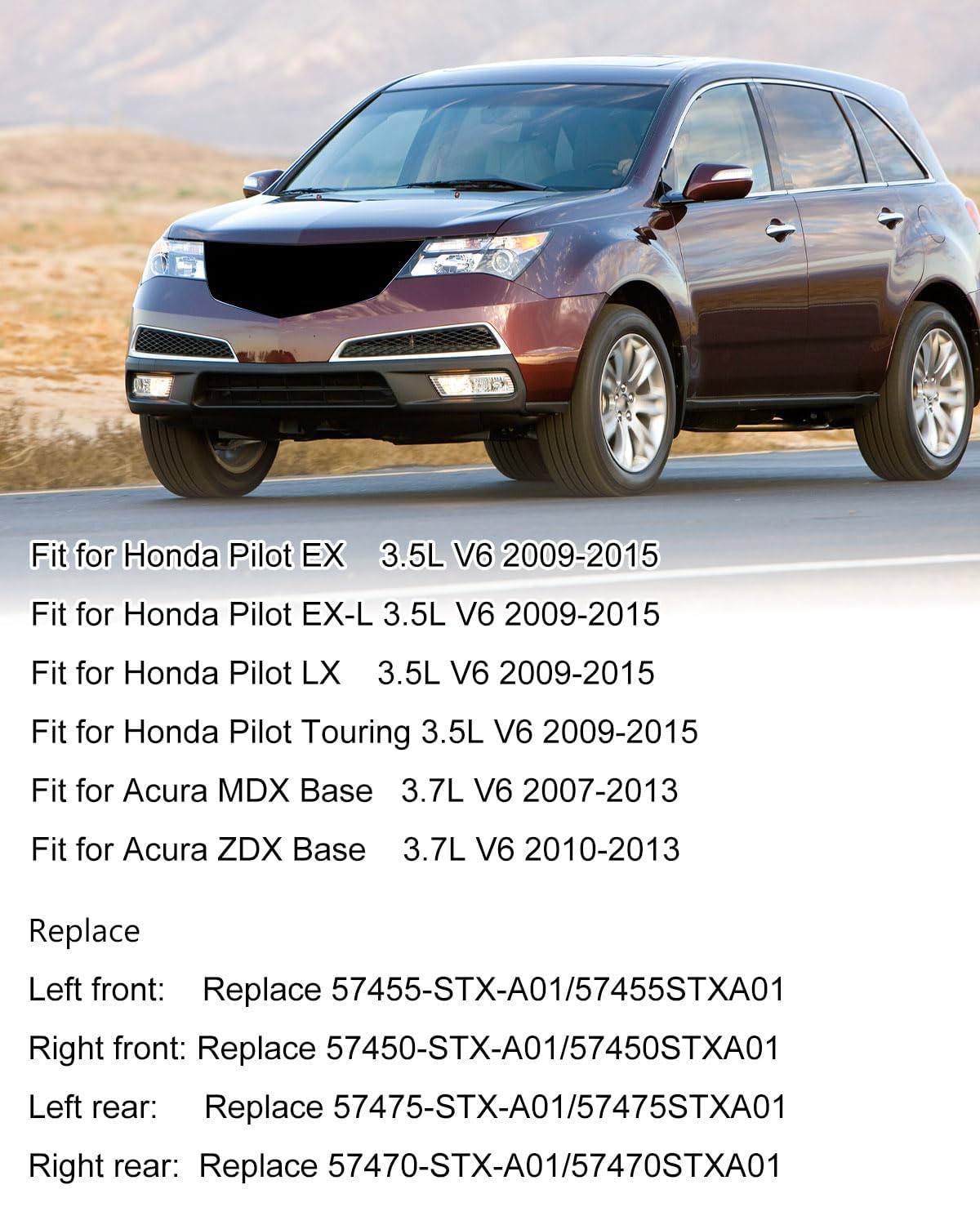 Compatible Models: Compatible with Honda Pilot EX 3.5L V6 2009 2010 2011 2012 2013 2014 2015 Compatible with Honda Pilot EX-L 3.5L V6 2009 2010 2011 2012 2013 2014 2015 Compatible with Honda Pilot LX 3.5L V6 2009 2010 2011 2012 2013 2014 2015 Compatible with Honda Pilot Touring 3.5L V6 2009 2010 2011 2012 2013 2014 2015 Compatible with Acura MDX Base 3.7L V6 2007 2008 2009 2010 2011 2012 2013 Compatible with Acura ZDX Base 3.7L V6 2010 2011 2012 2013 Replace Part Number: Replace 57455-STX-A01/57455STXA01 57450-STX-A01/57450STXA01 57475-STX-A01/57475STXA01 57470-STX-A01/57470STXA01 Features: Real-time Monitoring: Accurately captures wheel speed and rapidly transmits signals High Safety: Immediately identifies slip and lock, ensuring stable driving Durable Material: High-strength plastic, impact-resistant, high-temperature-resistant, and corrosion-resistant Easy Installation: Plug-and-play, secure connection, saving time and effort