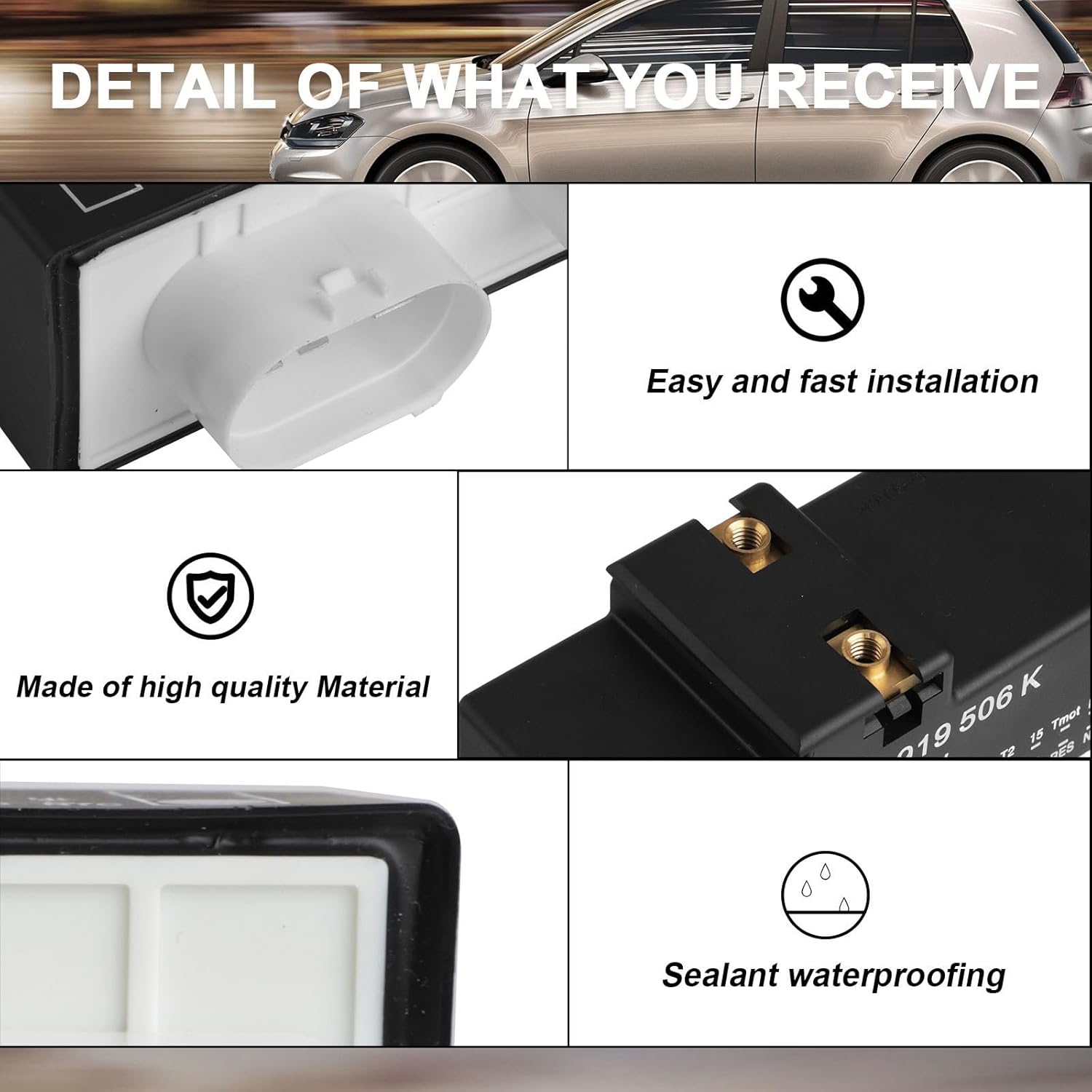 Auto Fan Control Unit Module Relays For Replaces Part Number 1J0919506KFeatures:Part Number:1J0919506KEfficiently control your vehicle's cooling fan with this coolant fan control unit.Made from materials, this ABS+aluminum modules offer stability and reliability for your car electrical Suitable for automobile maintenance technicians and enthusiasts who need to adjust or replace their vehicle's electrical part your engine stays at right temperature with this modules, for optimizing your vehicle's cooling Specifications ABS Aluminum AlloyPackage Includes:1x Cooling Fan Control RelaysNote:Please allow 1mm errors due to manual measurement. Due to the difference between different monitors, the picture may not reflect the actual color of the item.