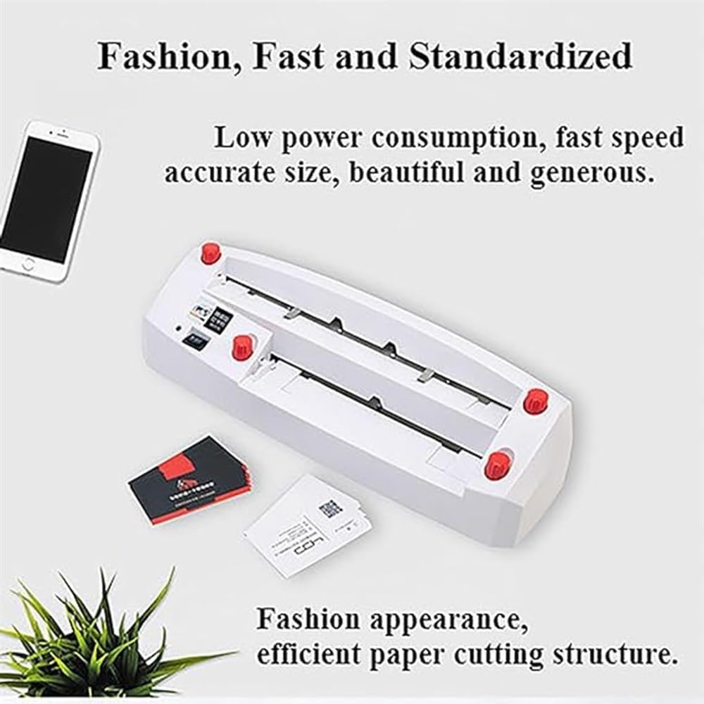 Product Model NameName: fine-tuning business card machineKnife life: 100,000 timesSuitable for paper type: (195-212)X297mmCutting speed: 50 rpmSuitable for paper thickness: (120-300g) except special paperPower supply voltage: AC220-240V/50HzCutting business card specifications: 90 X 54mm square cornerMachine power: 20wNumber of sheets cut: 1 sheetPlatform size: 21*42 cmMechanical precision: 0.5 mmPaper size: A4 210x297mm/195x295mmCutting size: 90 x 54 mm /85 x 55 mm (right) angle)Adjustable range of positioning plate: 1-18mmNet weight: 3.1KGFashionable and beautiful appearance design, suitable for a variety of office environments, especially suitable for all kinds of print shops / advertising design shops / small printing houses, etc.