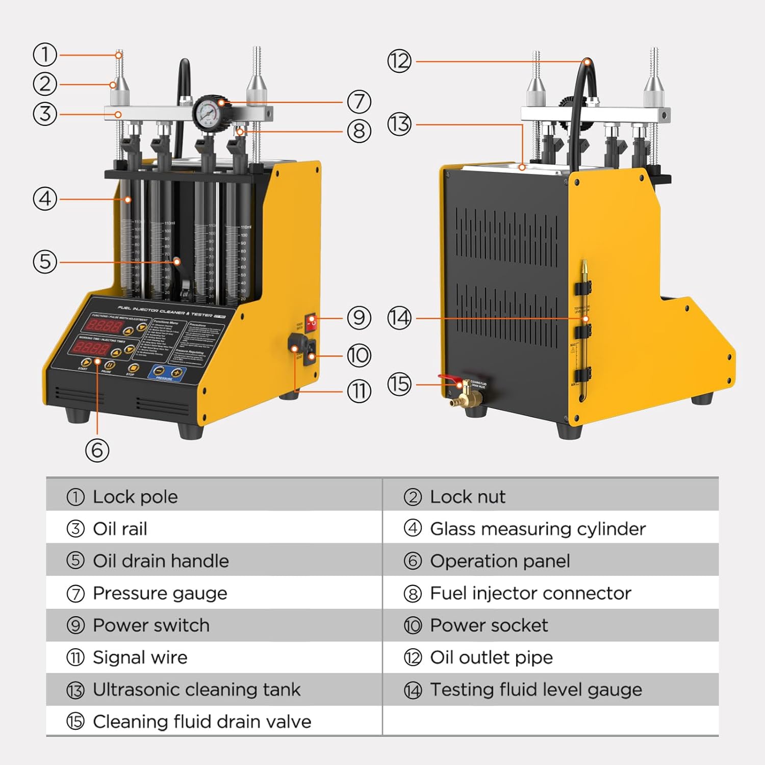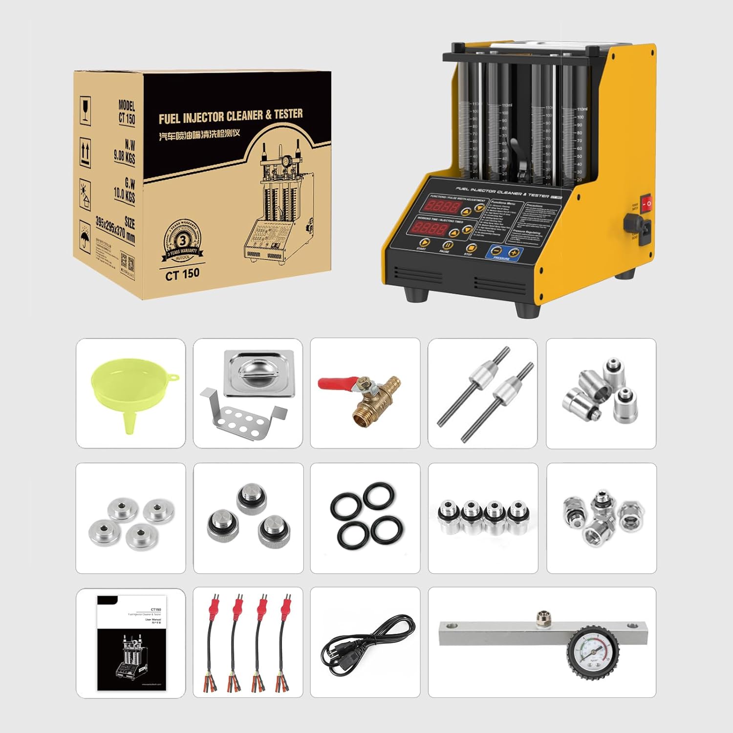 • 🚙【4-CYLNDER DESIGN】CT150 Fuel Injector Cleaner can clean and test up to four fuel injectors simultaneously providing efficient service.lt allows for easy observation and accurate evaluation of the injectors' condition through comparison.