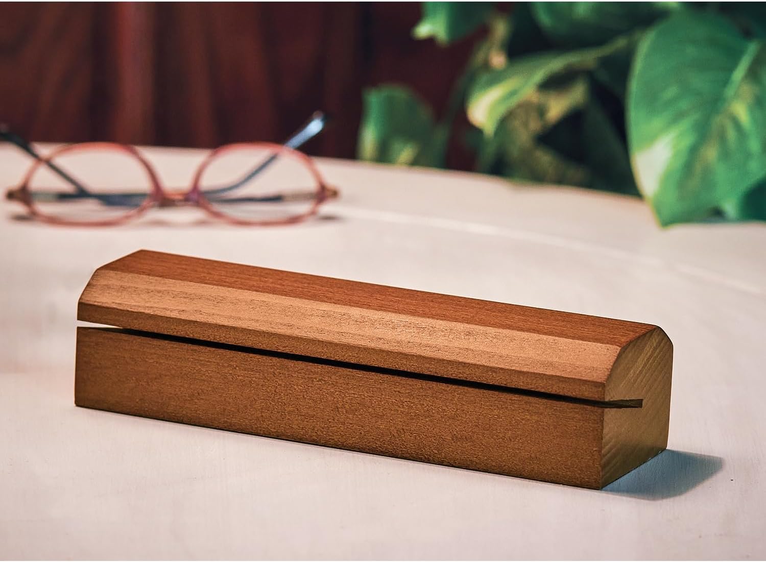 Keep your puzzle workspace tidy and your reference image in perfect view! This solid wood stand features a rich walnut finish and is angled to hold your puzzle box lid upright while you work. Designed for puzzlers who love a clean setup and easy access to the full picture. Fits most standard puzzle box lids. Measures 7" long x 2" high x 1 1/2" deep.
