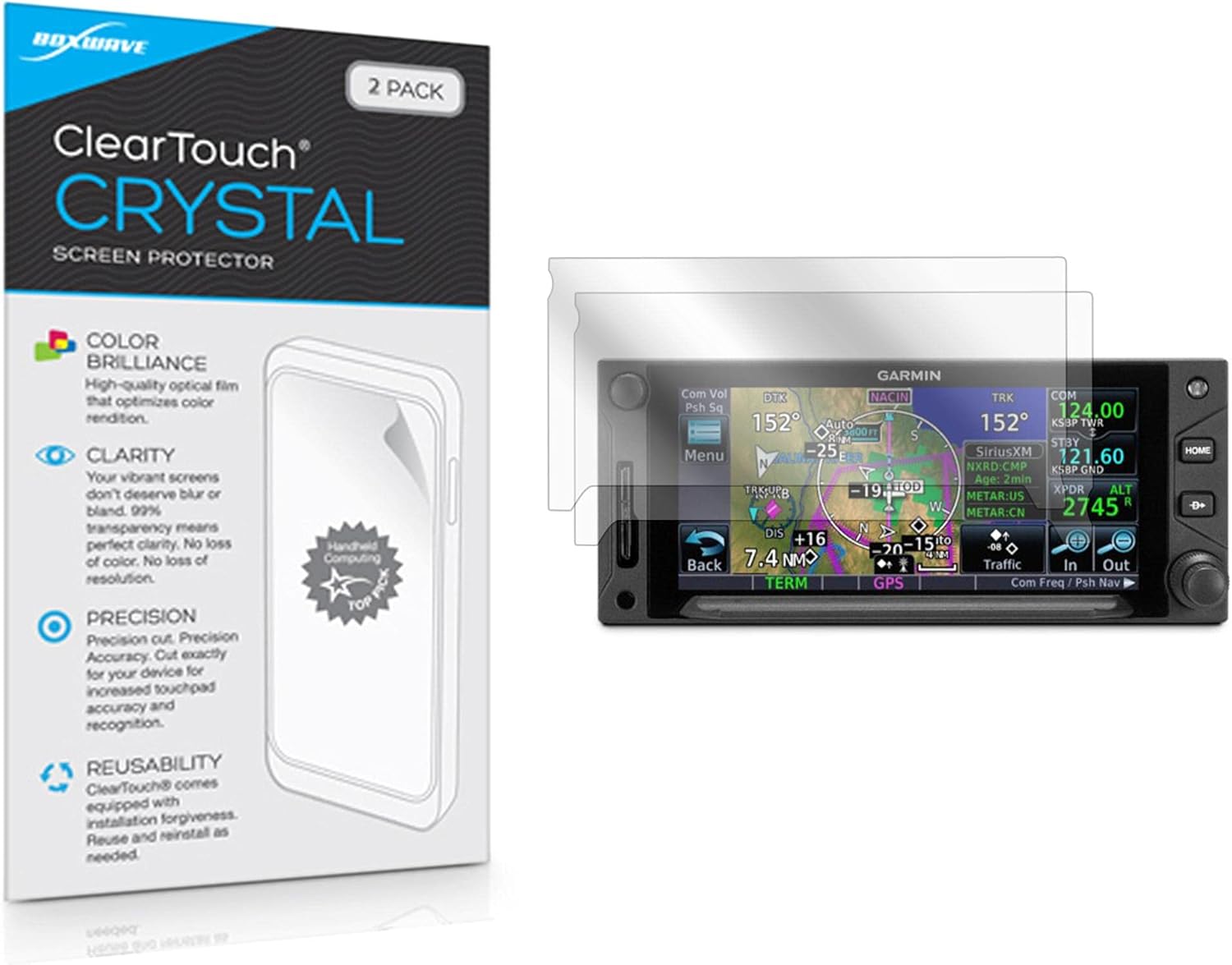 BoxWave Screen Protector Compatible With Garmin GTN 650 Xi.Keep your device's screen protected with the BoxWave ClearTouch Crystal, designed to deliver clear, reliable protection against dust and scratches.The dual-layered ClearTouch material provides durable protection while preserving your screen's clarity. With a precision-engineered design, it is custom cut to fit the exact dimensions of your device, ensuring full compatibility with your device.The glueless adhesive ensures a clean installation and easy removal without leaving any sticky residue behind. You can also reuse the screen protector by washing it with warm water and mild soap to restore its adhesive quality.Each package includes two (2) ClearTouch Crystal screen protectors - giving you a spare or one to share with a friend.*** PLEASE NOTE, GTN 650 XI DEVICE NOT INCLUDED ***