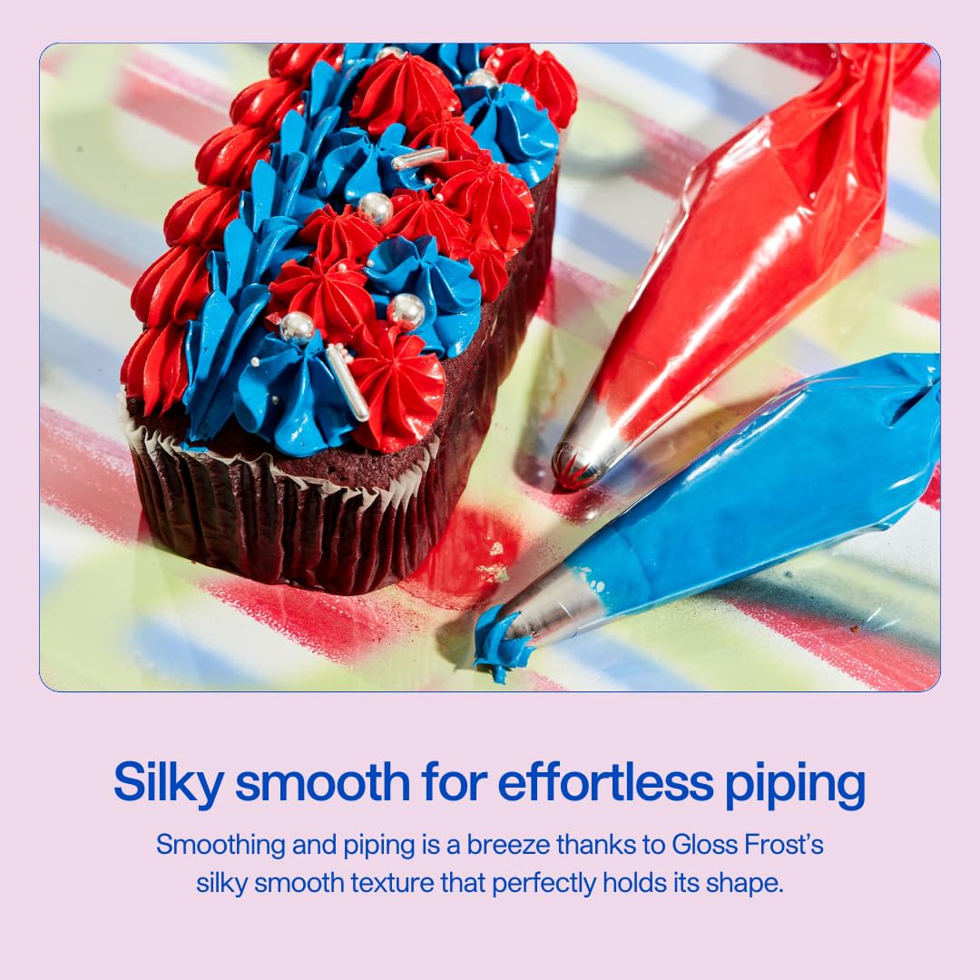 Colour Mill Gloss Frost Buttercream A silky-soft high-gloss white buttercream frosting with hints of creamy vanilla flavoring. Paired perfectly with Colour Mill Oil Blend coloring for bolder baking.Best used & stored at room temperature. Gloss Frost is a vegan and gluten-free Swiss-Meringue-style buttercream with subtle hints of creamy vanilla flavoring. Colour Mill developed this recipe to look as good as it tastes, with a high gloss that will make your bakes shine, without the sickly-sweet sugar hit of other ready-made buttercreams. How to Use It Gloss Frost is ready to ice, pipe, fill (or eat) straight from the tub. Best enjoyed at room temperature. Simply scoop Gloss Frost from the tub and get decorating. The 1-liter tub pipes 24 cupcakes and covers one x 9-inch cake. The 2-liter tub pipes 48 cupcakes and covers two 9-inch cakes. Gloss Frost is best colored with Colour Mill Oil Blend. Where to Use ItAnywhere and on anything you can buttercream dream of. From on top of cakes and cupcakes to in-between macaroons.About Colour Mill Oil-Blend oil-based food coloringColor dyed and dispersed with these oils, allowing you to achieve color rich and vibrant. Best in buttercream, Swiss meringue, chocolate, cake batter, ganache and fondant. Allergen free, vegan. Meets food-safety standards of Australian and New Zealand Food AuthorityShake well before use. Take it easy, colors will develop over time. Store in a cool dry place away from sunlight. Contains glycerol, colors and lecithin. Blended and bottled in Australia from local and imported ingredients.