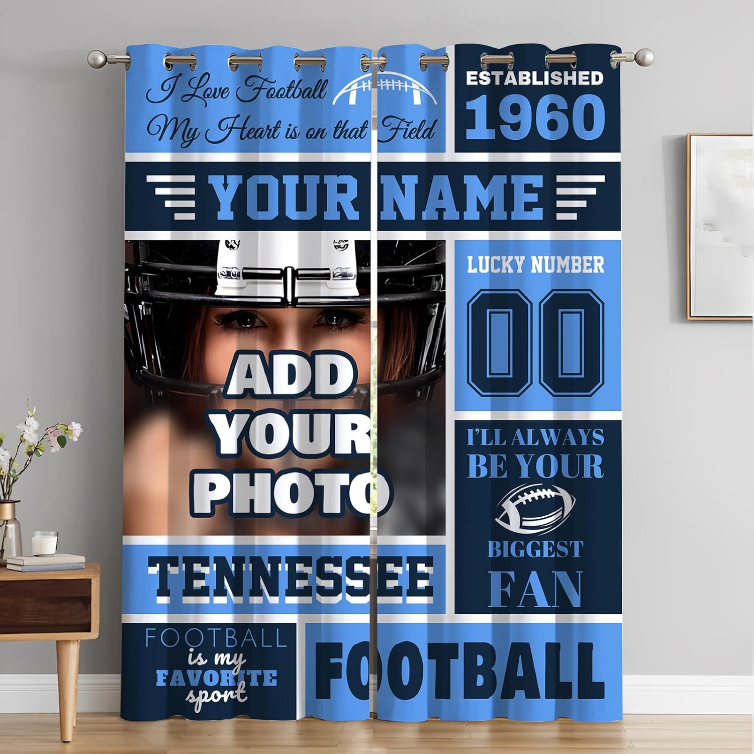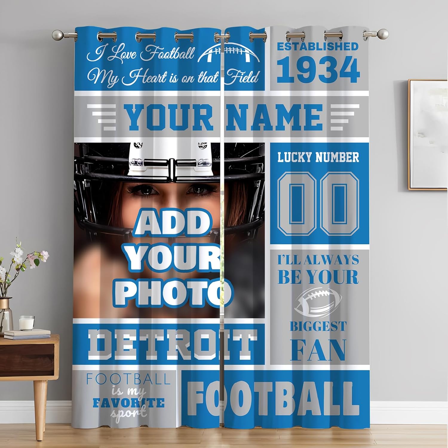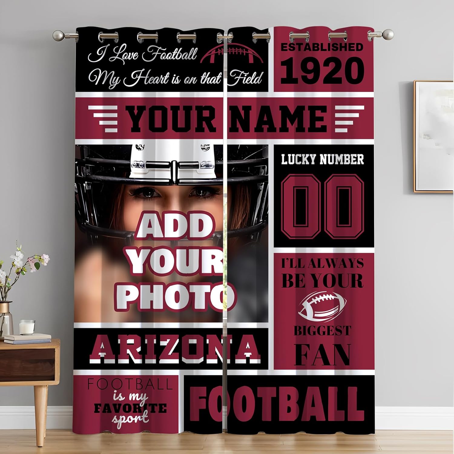• Custom Curtains: Select the city you need, click the "Customize Now" button, select the size you need, upload your photo, add your name and number, our designer will design it for you, and you will get a unique football curtain.