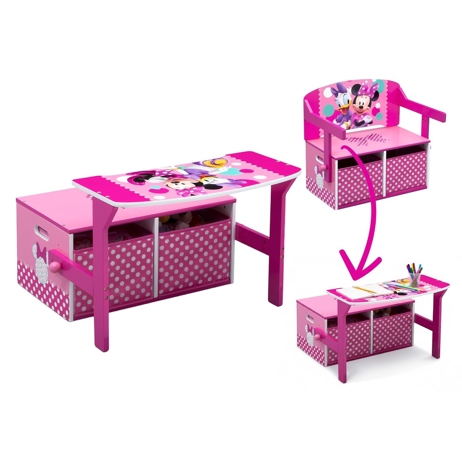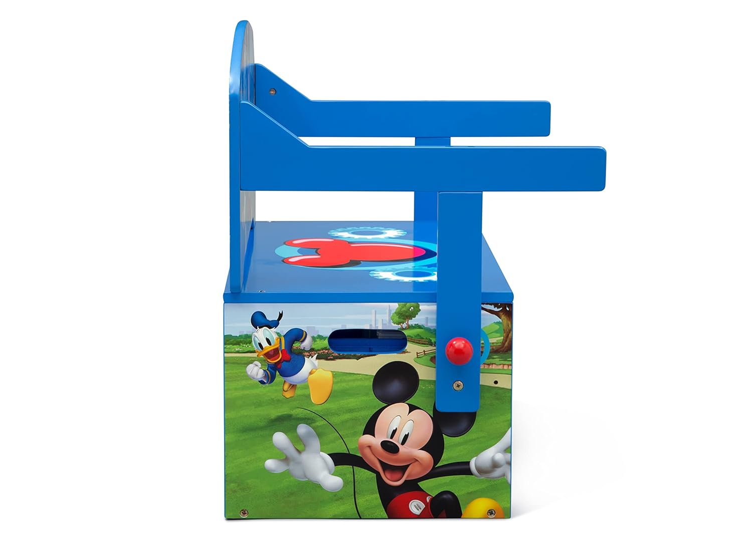 Bring home the fun-loving charm of Mickey with the Disney Mickey Mouse Kids Activity Bench by Delta Children. An adorable addition to your child’s Clubhouse, this clever activity bench will have your child smiling, ear-to-ear when they see the colorful graphics of Mickey, Minnie, Donald Duck and the rest of the lively bunch. Its innovative, 3-in-1 design converts from a bench with storage, to a desk, in seconds, offering your little Mouseketeer the perfect spot for playtime, study time, even mealtime. Designed in a size that’s just right for them, the smart construction also features ample storage underneath with two fabric bins that are perfect for organizing books, toys or art supplies. Sporting a strong and sturdy wood frame, the Mickey Mouse Kids Activity Bench will inspire years of imaginative play and learning, making any activity more animated! About Mickey Mouse: Mickey, the world's most famous mouse, has been delighting and inspiring Disney fans for generations. Always looking for an adventure and up for trying new things, his optimistic nature and friendly disposition are his greatest qualities.