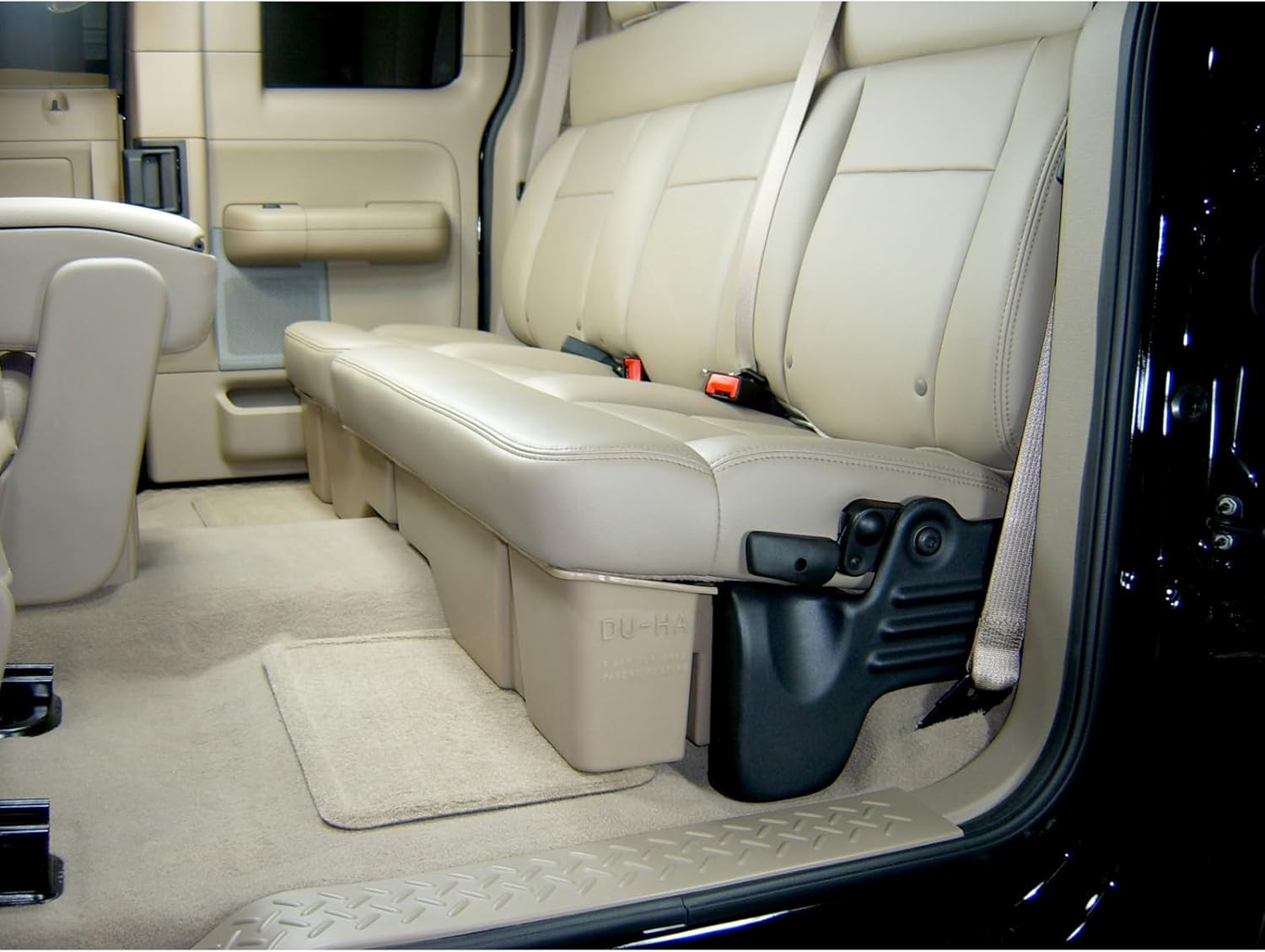 Whether you're a contractor, sports enthusiast, or anyone who values organized and secure storage, the DU-HA Underseat Storage System is the ultimate underseat truck storage solution for seamless truck storage integration. This innovative truck storage system maximizes space, enhances organization, and keeps your valuables, tools, and gear safe and secure. Proudly roto-molded and Made in the USA, the DU-HA Underseat Storage System comes with a lifetime warranty, reflecting the manufacturer's confidence in its quality and durability. The DU-HA Underseat Storage System features a durable, heavy-duty roto-molded construction which doesn’t allow for flexing and bending. It also includes an easily removable two-piece rack/organizer. You can also remove the dividers to store larger items. The DU-HA Underseat Storage System seamlessly integrates into your truck's interior, providing a factory-like appearance. It's make/model-specific fit guarantees optimal use of available space without taking up legroom. Elevate the organization and security of your truck's interior with this reliable and purpose-built underseat storage system.