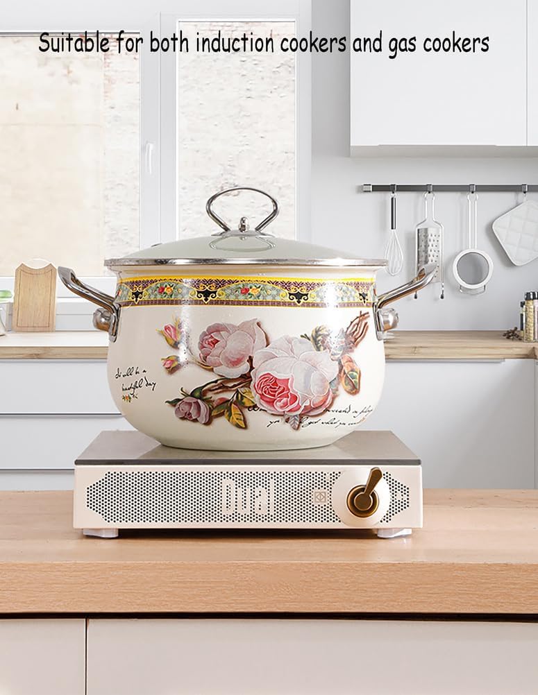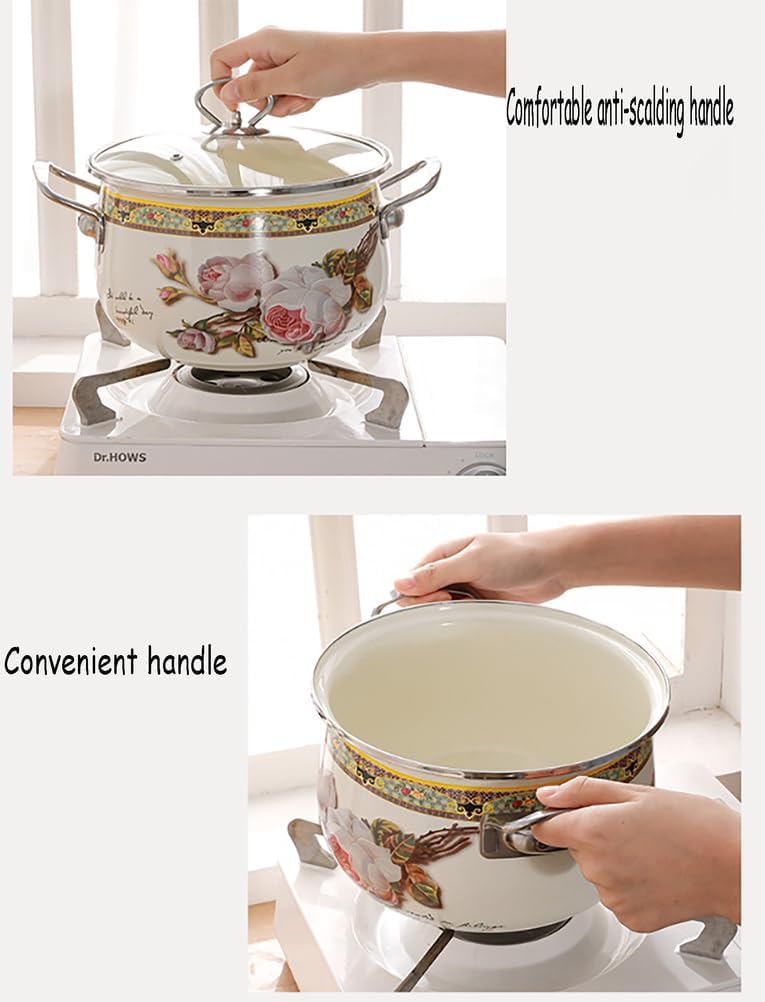 This enamel cooking pot heats fast and safe to 400 degrees Fahrenheit, compatible with various stovetop surface such as Electric stove/Halogen stove/Induction cooktop/Gas stove. Dishwasher safe, but it is recommended to wash and maintain by hand.Great as simmering pot for for creating natural home fragrances during seasonal holiday and daily life.Crafted from high-quality enamel-coated cast iron,cooking pot is built to last. The smooth enamel surface is easy to clean and resistant to stains and odors, ensuring your pot stays looking new for years to come.Product Information:Name: Enamel potQuantity: 1pcsMaterial: High quality enamelUsage: Suitable for all stove tops, including gas stove, electric stove, induction stove and more.Color: FlowerPackage Information:1 x Enamel cooking pot