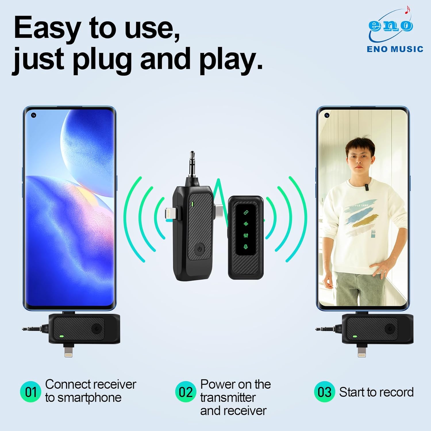 √【3 in 1 Lavelier Reciever, Convenient to Use on Iphone, Smart Phones, Ipad and Cameras. 】Wide compatibility, extraordinary voice. The 3 in 1 receiver comes with TypeC, Lightning, and TRS 3.5MM plug to satisfy different device connections.