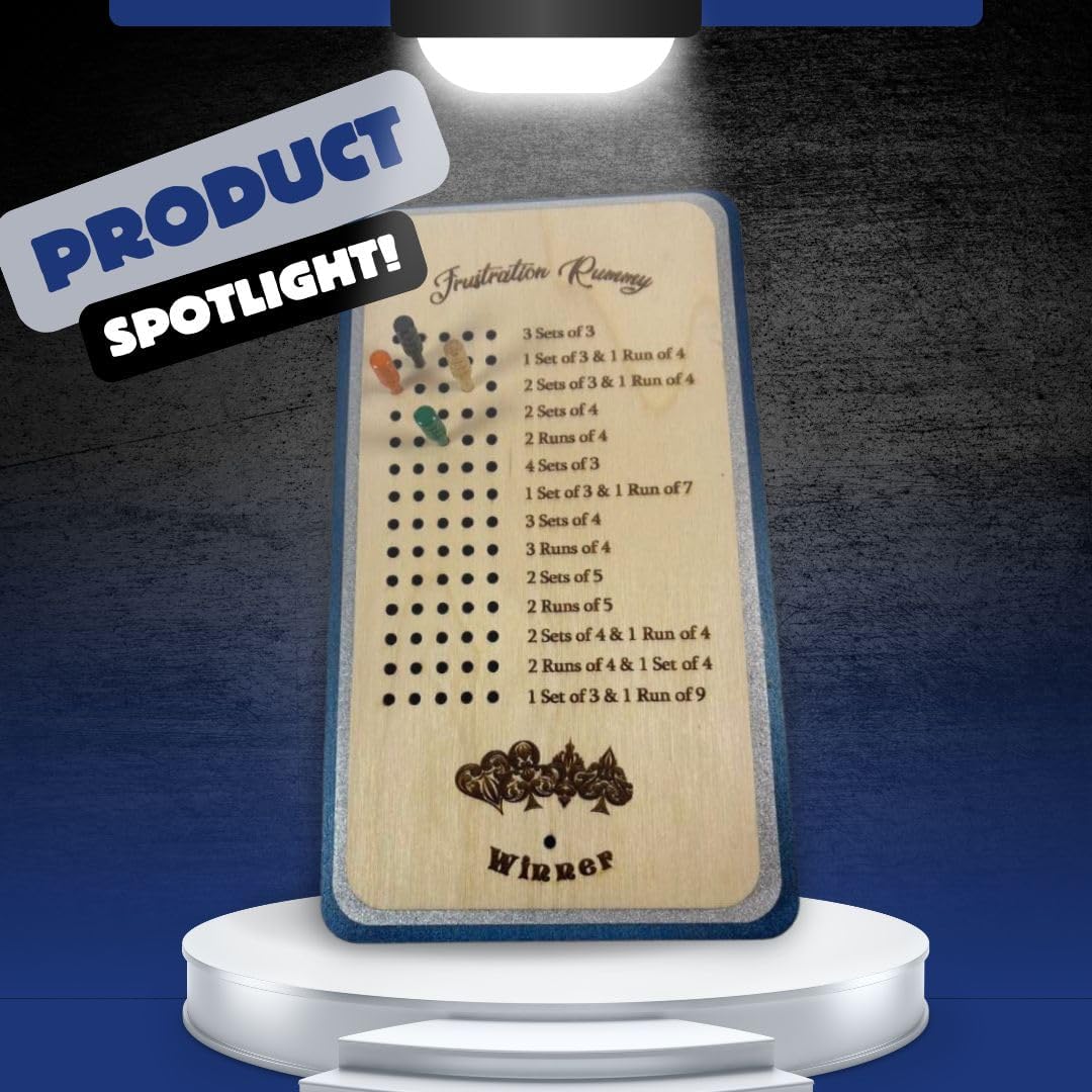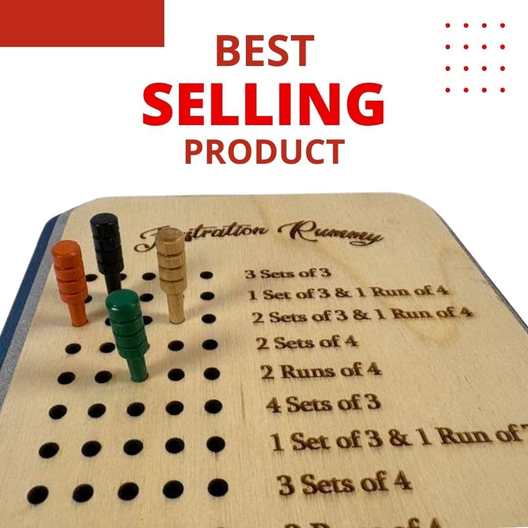 Are you feeling bored? Searching for an entertaining board game that brings family and friends together? Search no more! This score card contract Rummy wooden board is just what you need. It is laser engraved for lasting quality, crafted from three layers of high-quality 1/4" Baltic Birch, guaranteeing a pristine gaming experience every time. This exquisite scorecard includes five premium wooden pegs, offering both functionality and elegance as you keep track of each round with ease, designed to enhance your gaming experience, ensuring smooth and frustration-free gameplay every time.From family gatherings to game nights with friends, this is the frustration rummy game board set that you must have! The scorecard's reverse side features the game's basic game rules engraved for quick reference, ensuring a seamless start to your gaming experience.And the best part? Thanks to its compact and portable design, the rummy card it's also the perfect companion for your travels and camping adventures, which ensures fun anywhere you go! PACKAGE INCLUDES:5 x Wooden Pegs1 x Frustration Rummy Score CardSo, what are you waiting for? Get yours today and make every play session a memorable experience!