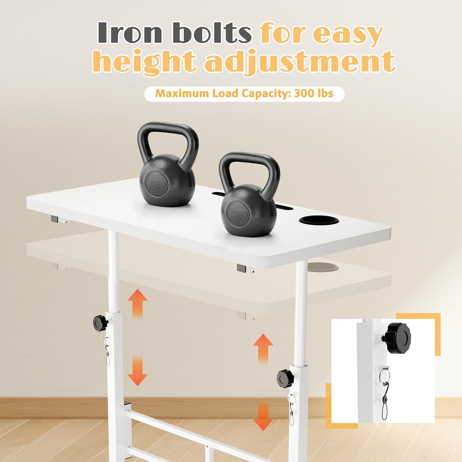 Find Your Perfect Height, Relieve Fatigue Say goodbye to a sedentary lifestyle. Our standing desk features an easy, wide-range height adjustment from 31.49 inches to 46.85 inches, allowing you to seamlessly switch between sitting and standing. This helps you combat fatigue, improve posture, and alleviate back and neck pain. The sturdy iron bolt mechanism ensures the height locks securely at your preferred setting, providing a stable surface for typing and writing. Unmatched Stability for Demanding Use We engineered this desk for real life. The robust steel frame is reinforced with double supports and a central crossbar, creating an incredibly stable platform. As shown in our stress tests, it can hold an impressive 300 lbs, making it a reliable and durable alternative to standard office desks. Designed for Productivity and Convenience The large desktop provides ample space for your essential equipment. The unique addition of a dedicated cup holder prevents spills and keeps your water cup or coffee within easy reach. Whether you're working from home, studying, or creating a compact office nook, this desk helps you maintain an organized and efficient workspace. A Stylish, Space-Saving Solution Perfect for small spaces, the desk's clean, aesthetic blends seamlessly with any home decor. Its versatile design is ideal for traditional office setups or more dynamic environments, like working on a treadmill.