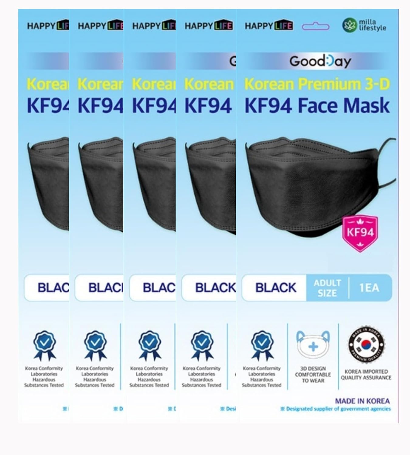 TK FASHION MASK : [PREMIUM QUALITY] : All materials are made in Korea with premium quality by HappyLife. Tri-folded structure and hygienic individual packaging. TK FASHION MASK : [HIGH EFFICIENT PROTECTION] : 4 multi-Layered Protection with high quality ‘KF’ for Korea Filter & ’94’ for 0.4um particulate matter filtered, 94% blocks up against very small particles. Aluminum Nose wire for better airtightness TK FASHION MASK : [COMFORTABLE ERGONOMIC DESIGN] : The unique 3D ergonomic structure tri-folding design provides a closer, more secure fit around nose and cheeks and under the chin. TK FASHION MASK : Elastic ear loop high elastic ear loop, pose less press to ears and face, avoid the uncomfortableness from long-time use.