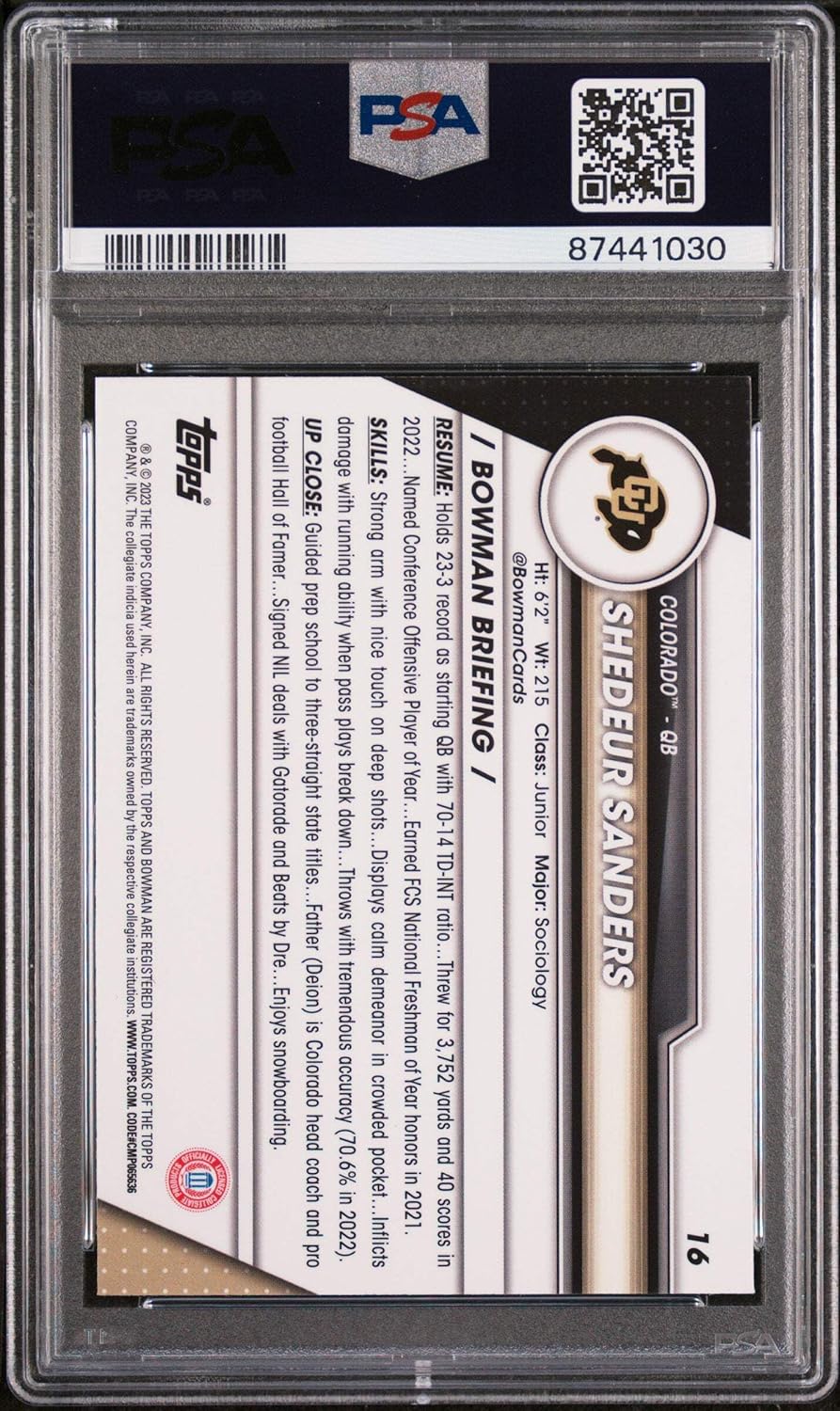 Graded 2023 Topps Bowman U Chrome Shedeur Sanders #16 Rookie RC Football Card PSA 10 Gem Mint