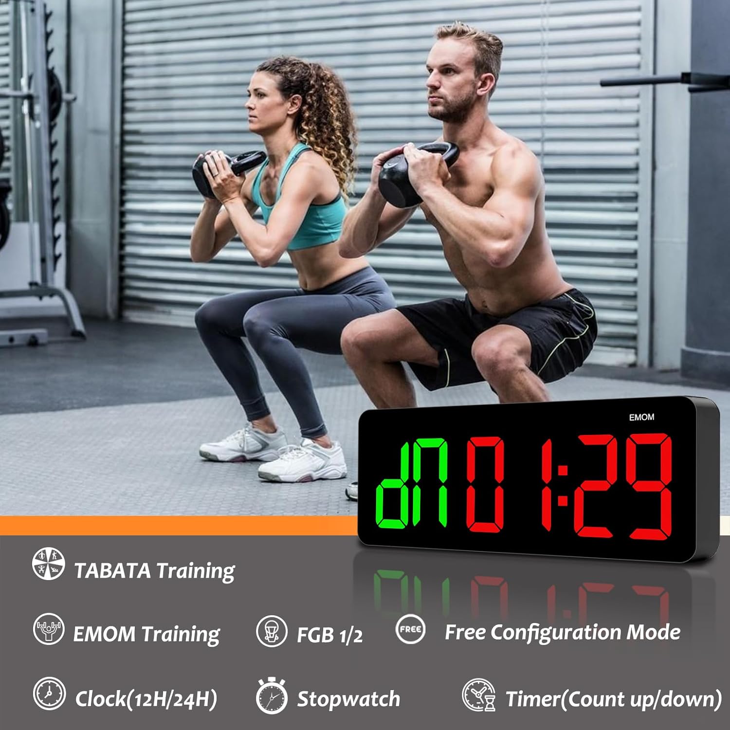 Gym Clock Timer for Tabata/FGB/EMOM,Interval Workout with Large LED Display,Digital Wall Clock with Seconds | Fitness Timer with Remote Control for Classroom Home Garage Office