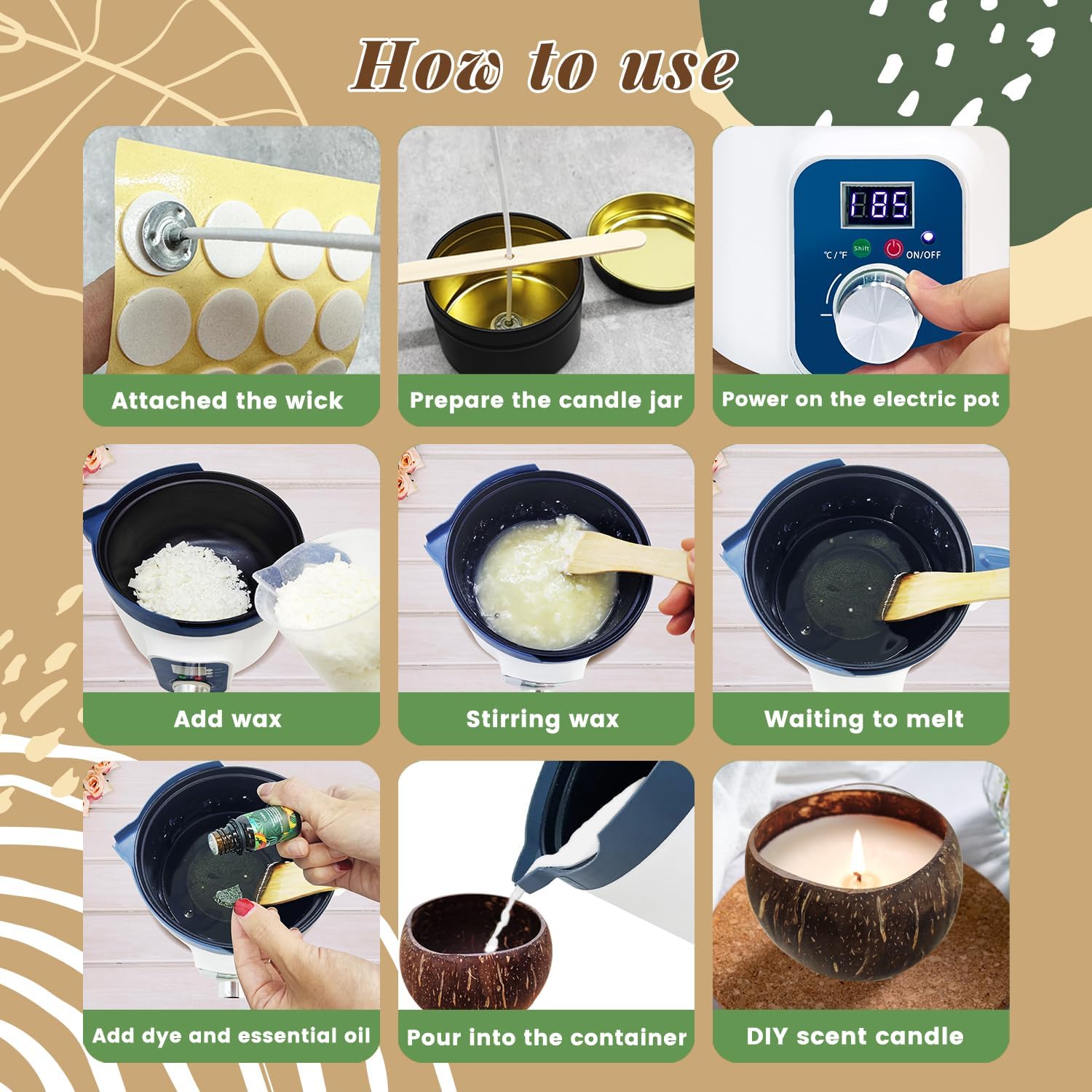 | Included Components | Digital Candle Making Kit, Temperature-Controlled Wax Melting Pot, 8 Packs of Soy Wax Beads, 6 Decorative Tins, Coconut Shell Candle Holders, Tealight Molds (Stars, Hearts), Candle Making Tools, 6 Fragrant Essential Oils, Instruction Booklet |