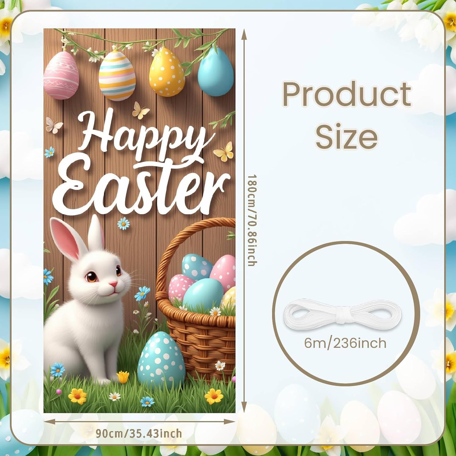 Features:This Easter door cover decoration comes with bunny rabbits, eggs, flowers, and butterfly patterns, adding a strong and colorful Easter atmosphere to your Easter party.Specifications:Material: PolyesterColor: ColorfulSize: 180x90cm/70.8x35.4inchPackage includes:1×Happy Easter door cover banner1 × Hanging RopeNotes:1. Please unfold it ahead of the party or lightly iron the banner if there are creases.2. Manual measurement, please allow slight errors in size.3. The color may have slight differences due to different screen displays.