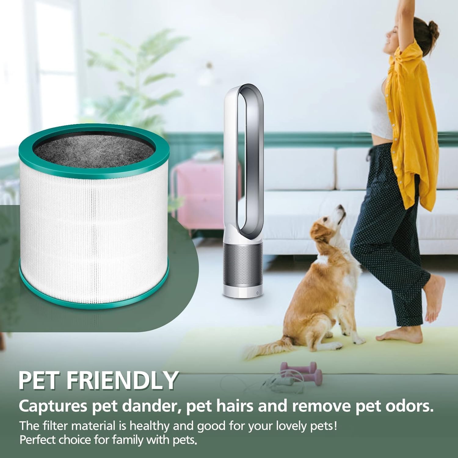 HUAWELL Premium Filters ReplacementFilter Replacement compatible with Dyson Pure Cool Link Tower Purifier TP01, TP02, TP03, AM11, BP01.The power and effectiveness of your air purifier depends on the filter inside. Using a high quality replacement filter will maintain the optimum performance of your air purifier, helping to improve indoor air quality.High-efficiency replacement parts for optimum filtration effect.3-in-1 filtration systemPremium pre filter: Sturdy mesh pre-filter, captures large particles, such as lint, fibers, hair and pet fur.True Filter: Captures 99.9% of airborne particles down to 0.3 microns, effectively captures dust and particles in the air.