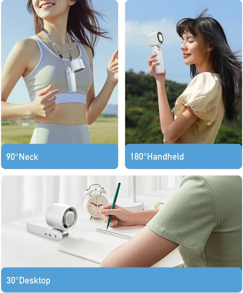 Stay cool and comfortable anywhere with this versatile 3-in-1 handheld fan. Featuring infinite speed regulation with up to 100 speed settings, this powerful personal cooling device adapts perfectly to your needs. The robust 4000mAh battery ensures lasting performance for all your outdoor activities, office work, or summer events. Whether you're commuting, attending sports games, or working at your desk, this fan transforms easily between handheld, desktop, and neck-worn configurations. Its strong airflow provides rapid cooling relief on hot days, while the adjustable settings let you fine-tune the breeze exactly how you like it. The portable design makes it ideal for travel and everyday carry. Perfect for anyone seeking reliable personal cooling, this versatile fan delivers powerful performance when and where you need it most.