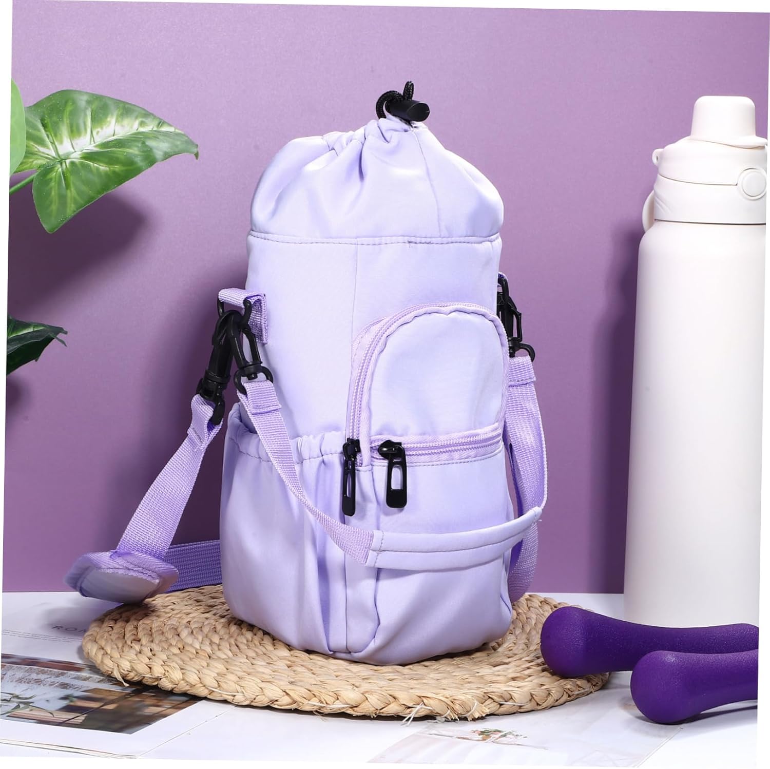 Package List 1 bottle bag Features -Material:Fabric hot cup sleeve -Color:Purple sleeve - Size: 30.00X14.00X11.00cm/11.79X5.50X4.32in bottle cooler bag -Multiple pockets: The water bag boasts a thoughtful arrangement of compartments, storing phones, keys, credit cards, and more water bottle carrier bag. -Quick access: Simplify access to your water bottle with the user-friendly drawstring closure Open and close the pouch effortlessly while maintaining optimal insulation womens. -Outdoor use: Designed for durability and versatility, the water bottle bag is an indispensable accessory for outdoor enthusiasts hydro. -Universal compatibility: This adaptable bottle bag flawlessly embraces water containers of diverse shapes and sizes, making it a versatile solution holder. -Dual carry styles: Transition seamlessly between the shoulder strap and carrying handle Both options offer comfort and convenience water bottle holder.Goods Descriptionthermal cup The strap and carrying handle allow you to easily take it anywhere.water bottle carrier bag The bag is for outdoor adventures or everyday use.bottle pouch Keep your water bottle close at hand with our convenient carrier bag.water bottles The bag is designed to fit most standard-sized water bottles and features a secure drawstring closure to keep your bottle in place