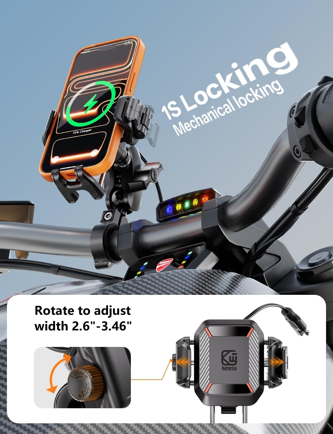 | Additional Features | 15W qi wireless charger and 36W PD port, vibration dampener,shockproof soft silicone, 1s lock or release switch, anti-theft, adjustable size design, not block phone camera |