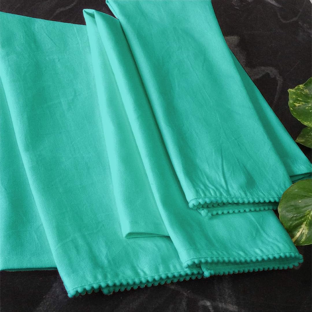 Upgrade your kitchen essentials with these solid cotton dish towels, designed for everyday performance and timeless style. Crafted from 100% premium woven cotton, these oversized kitchen towels (18"x28") are thick, durable, and soft to the touch. Beautifully hemmed with a decorative mini trim at the bottom, they bring an elegant touch to your kitchen décor while serving a variety of purposes. Handcrafted in India, these solid-colored kitchen towels offer a chic and minimal aesthetic that pairs well with both modern and rustic interiors. Whether you're drying dishes, wiping counters, or presenting them as a thoughtful gift, these towels are as beautiful as they are functional. Care Instructions: Machine wash cold with like colors Do not bleach or dry clean Tumble dry low Medium iron as needed Ideal For: Drying dishes & hands Wiping countertops & surfaces General kitchen cleanup Decorative display over oven handles Gifting during holidays or special events These solid cotton kitchen towels are both functional and stylish—making them a staple in any modern or traditional kitchen. Invest in sustainable, reusable tea towels that are built to last and look great while doing it.