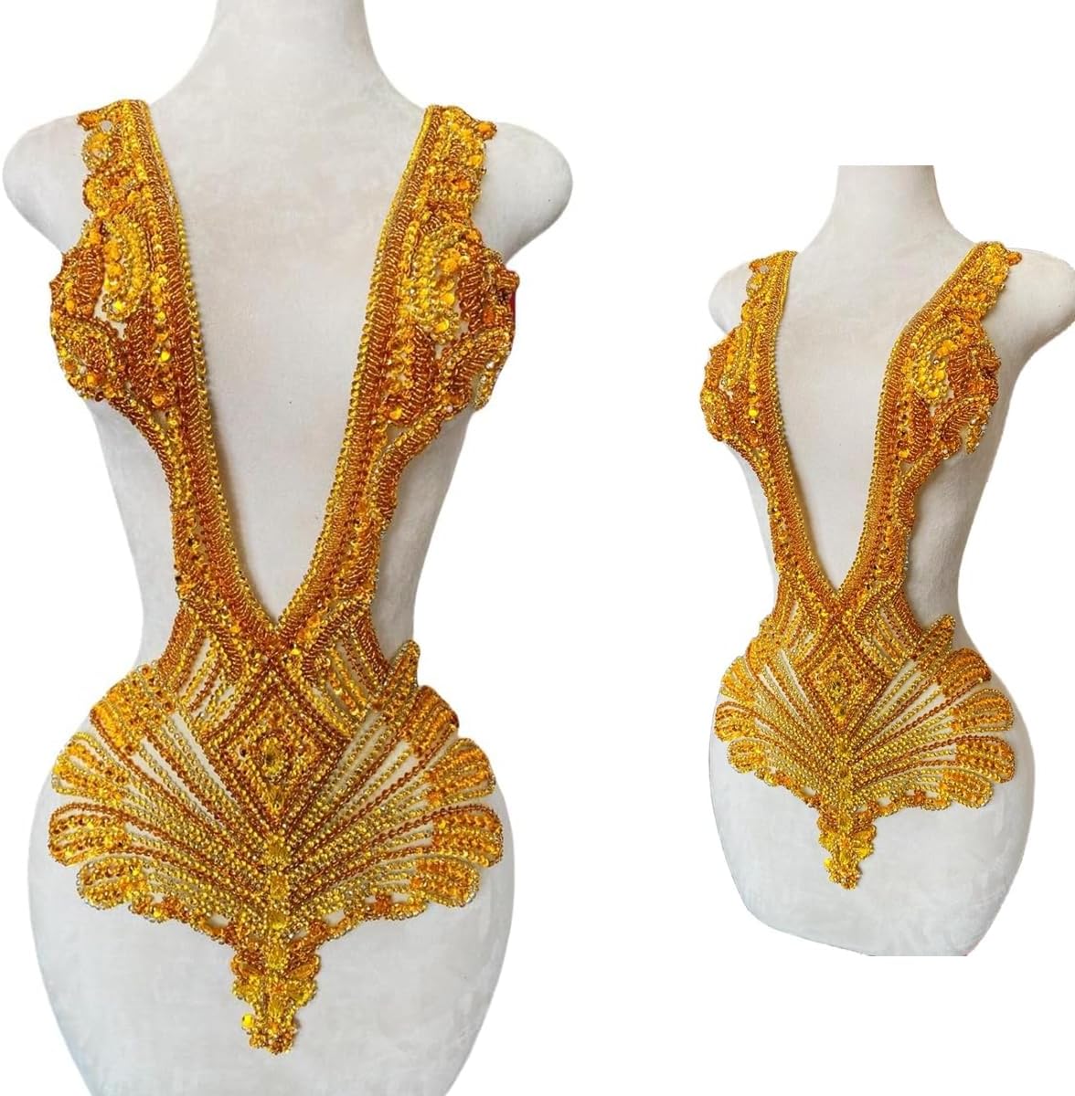 Our Large Bodice Applique boasts unmatched quality, made from the finest Crystals and Beads to ensure durability and longevity. The intricate and unique design of this Applique makes it stand out from the rest. Its sparkling and shiny texture makes it perfect for any occasion! Designed to suit all dress styles, this Applique is sure to impress!