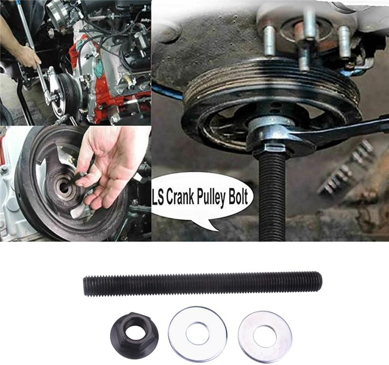 Features:Harmonic balancer install tool is made of high-grade steel with great durability, which is effective for rust, crack, and deformation resistance.It is long enough to fully thread into your crank and push the crankshaft pulley into position with effortless installation.This is a must-have for engine swaps or upgrading the balancer.This product has been upgraded. The design of the outer hexagon of the bolt head and the extended nut is more convenient to use.Colour: Blackmaterial: metalFitment:1. Fit for GM 1997-UpCamaro, Corvette, Trans Am, GTO, G8, LS Truck2. Fit for all GM based LS engines: (4.8L, 5.3L, 5.7L, 6.0L, 6.2L, 7.0L)LS1, LS2, LS3, LS4, LS6, LS7, LS9, LSA, L20, L33, L59, L76, L71, L77, L92, L94, L96, L99, LR4, LM4, LM7, LMG, LMF,, LQ4, LQ9, LY2, LY5, LY6, LH6, LH8, LH9, LFA, LC9, L9H Engines or LS-powered hot rod.3. Not fit LT1 5.7L engines (1992-1997)How to use:Simply thread the tool into the crankshaft until it seats, then tightens the nut down until the pulley is seated.Using the original bolt to press the harmonic balancer back on is a really bad idea. Don't do it. When using the original bolt the stress is on only a few threads which can lead you to ruin your crankshaft threads. When using this tool you simply thread the tool into the crankshaft, slide the washers on, then turn the nut to press the harmonic balancer back onto the crankshaft. All of the stress is on all of the threads of the crankshaft instead of just a few. Remove tool and install and torque original bolt. This is a simple tool that you can use over and over again and works awesome.Package includes:1x Threaded Rod1x Nut2x WashersOnly the above package content, other products are not included.Note: Light shooting and different displays may cause the color of the item in the picture a little different from the real thing. The measurement all
