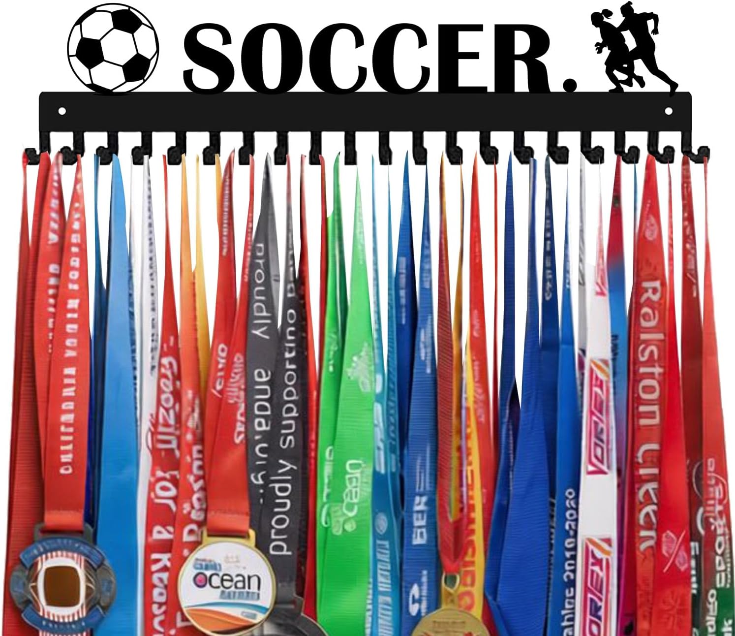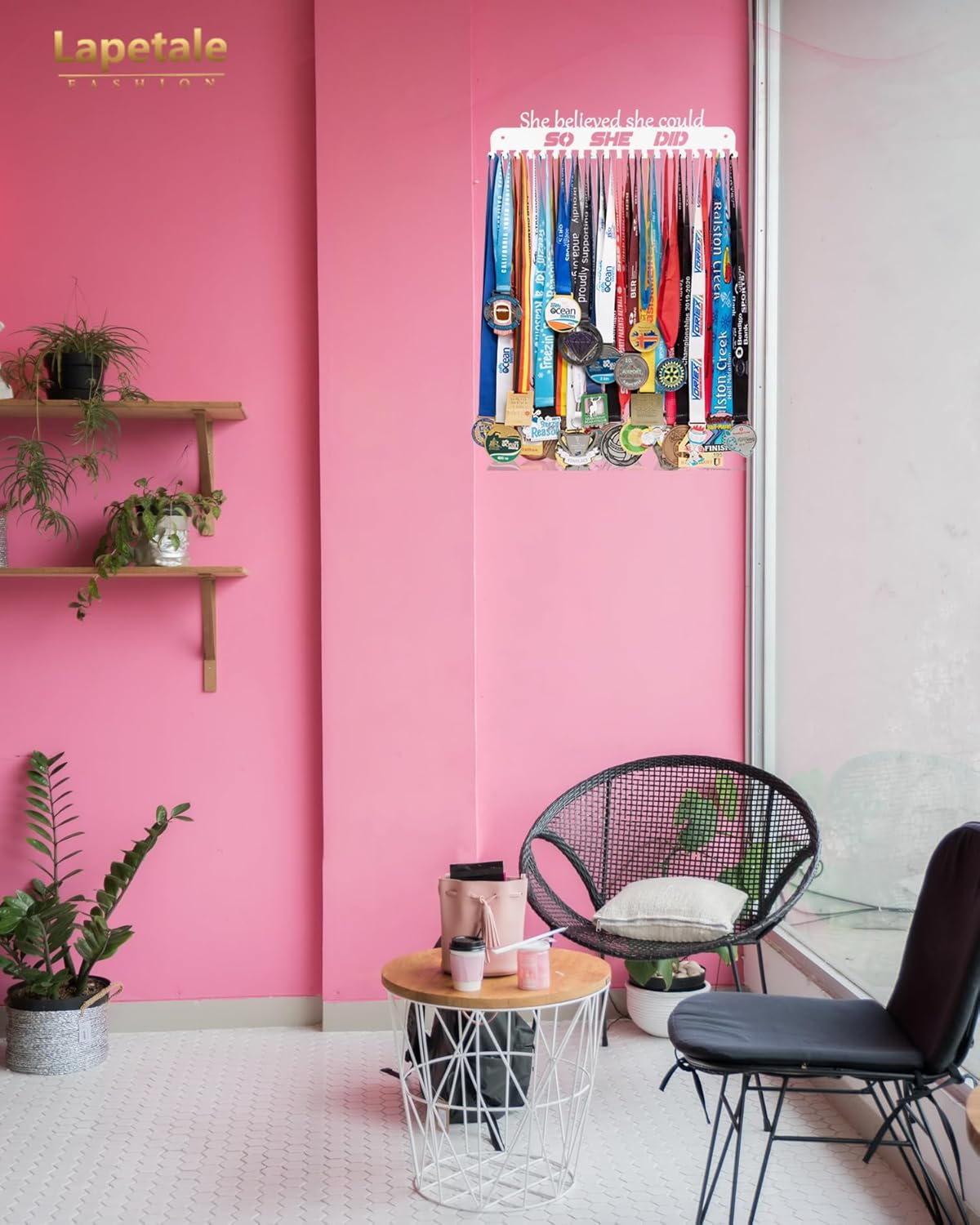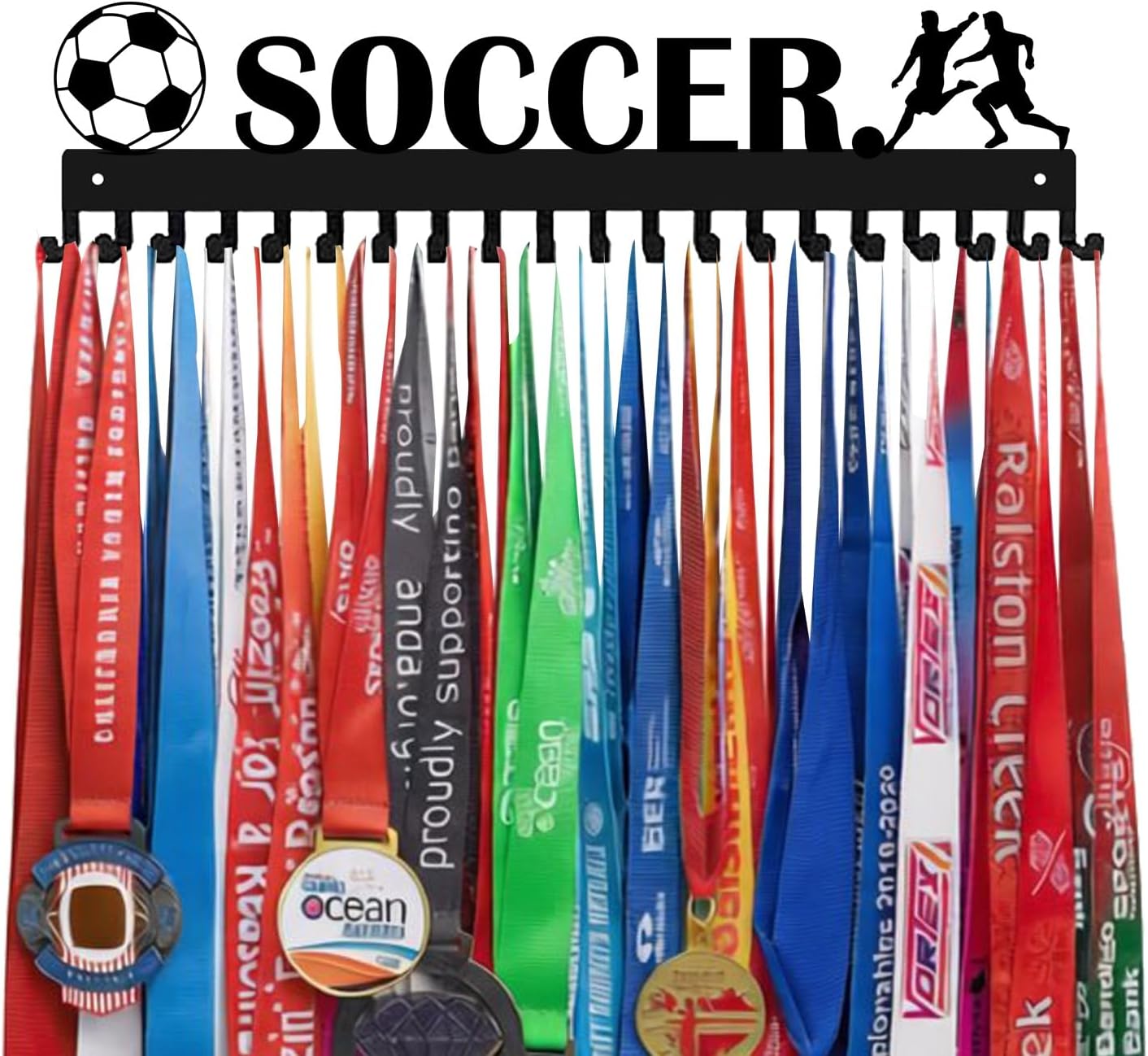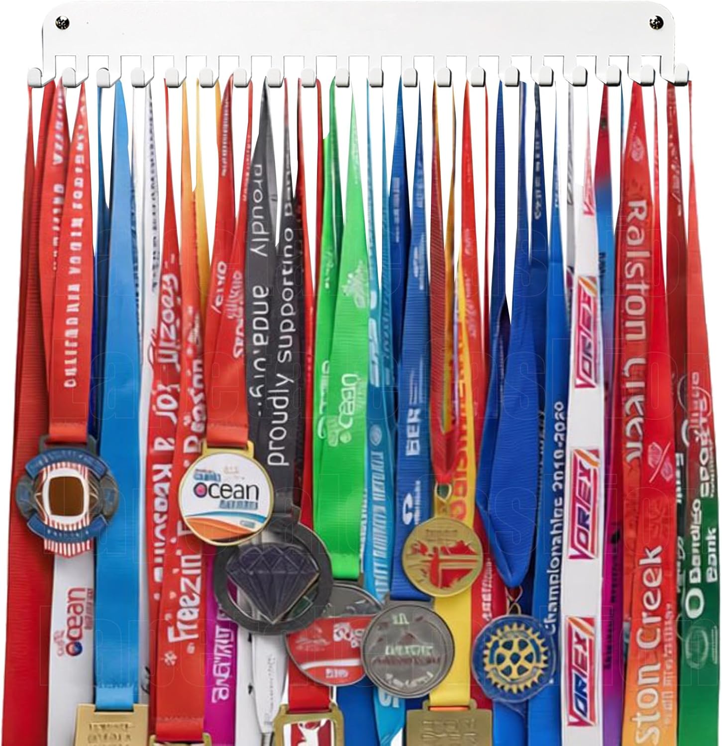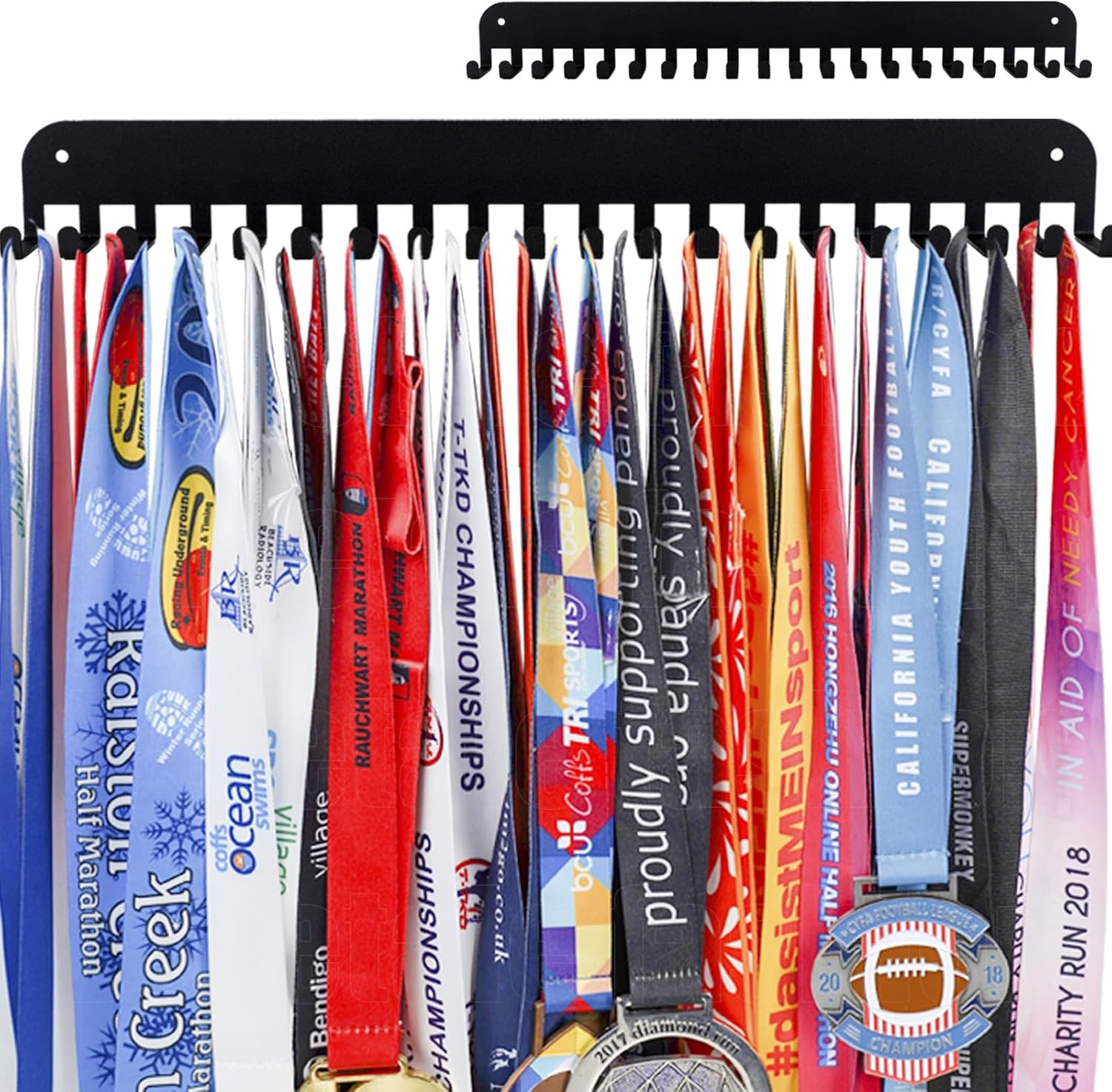 Congratulations Got medals Display them proudly. Never put your medals in your rack or shelf. It¡¯s time to display them with style and pride, with this awesome medal hanger! The gymnastics medal hanger is designed for medals and ribbons. Taking part in any race or competition requires commitment and dedication. Be proud of what you achieved and show off your impressive medal collection! Hold your memories from gymnastics Medal holder display hanger rack frame, design for any sports or team groups! Medal hangers for gymnastics, gymnastics medal and trophy display shelf can hold your medal and ribbons sturdy. Every time you walk by medal rack, it reminds of what you achieved and renews your motivation to keep striving toward your next goal. Medal hangers include a complete wall mounting kit. Comfortably holds 40+ medals & ribbons Medal hanger Dimension: 16 x 3.1X0.1 in. It may slightly vary depending on the design. Color: Black Metal *Does not include tools/medals*. Weight : 0.95 lbs Installation Steps Step 1: Mark the holes are drilled in a perfectly straight line with a balanced ruler. Step2: Drill all the marked holes. Step 3: Insert the wall plugs into the drilled holes. Step4: Screws go through the metal hanger, plastic spacer. Tighten the screws.