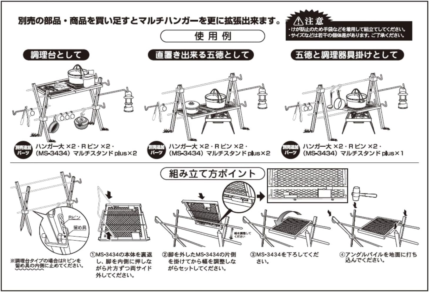 A bonfire hanger that can be used in multiple ways. Cooking Hanging storage lantern hanger. You can arrange it in a variety of ways, so you can create your own bonfire area. Comes with a carrying bag for easy carrying.
