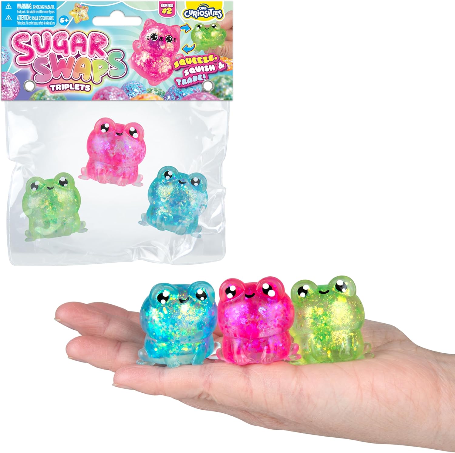 | Included Components | 1 Pack of Sparklee Sugar Swaps Cats Containing 3 Sparklee Cat Sugar Squishies - 1 Pink, 1 Orange, 1 Purple, 1 Pack of Sparklee Sugar Swaps Frogs Containing 3 Sparklee Frog Sugar Squishies - 1 Blue, 1 Green, 1 Pink |