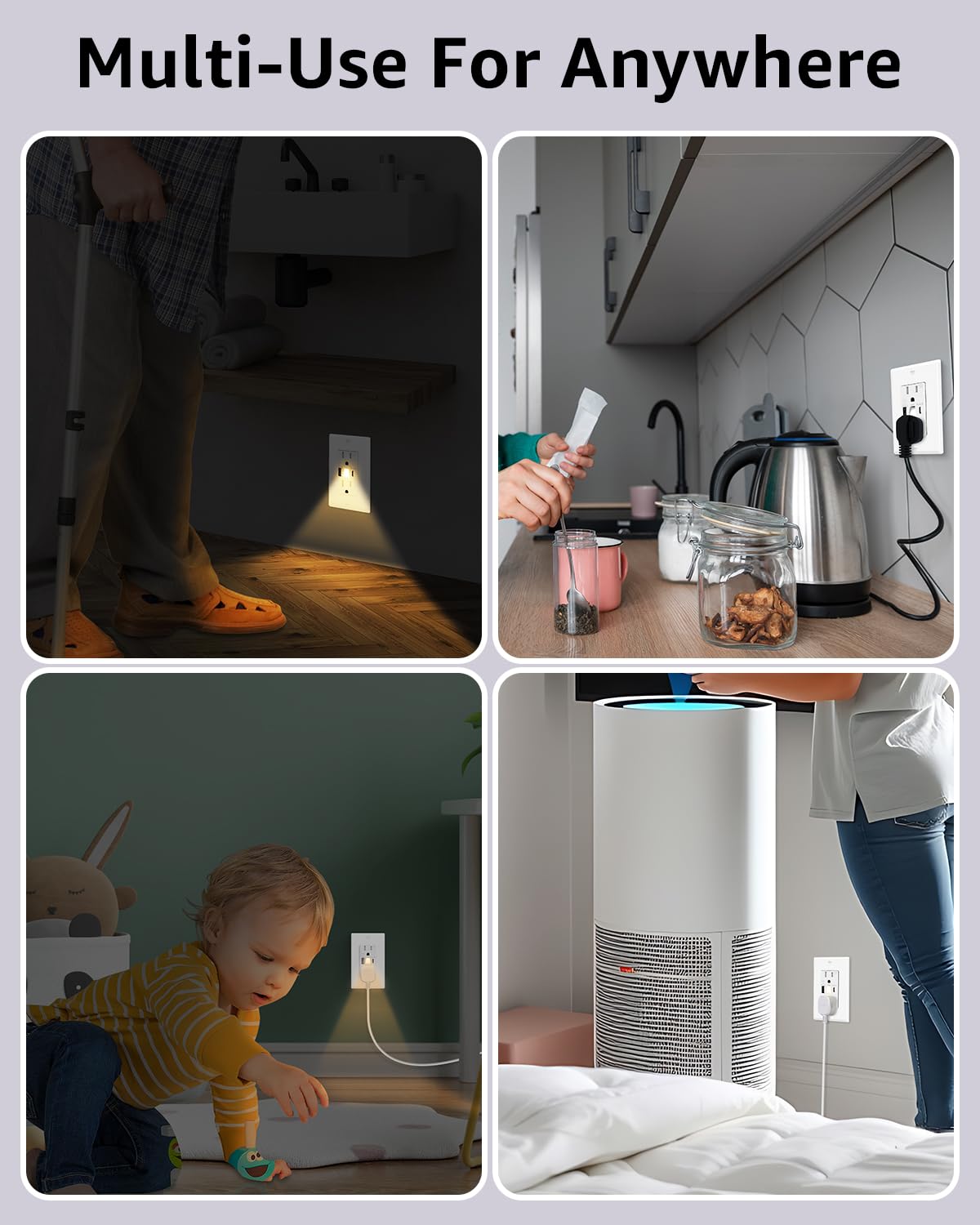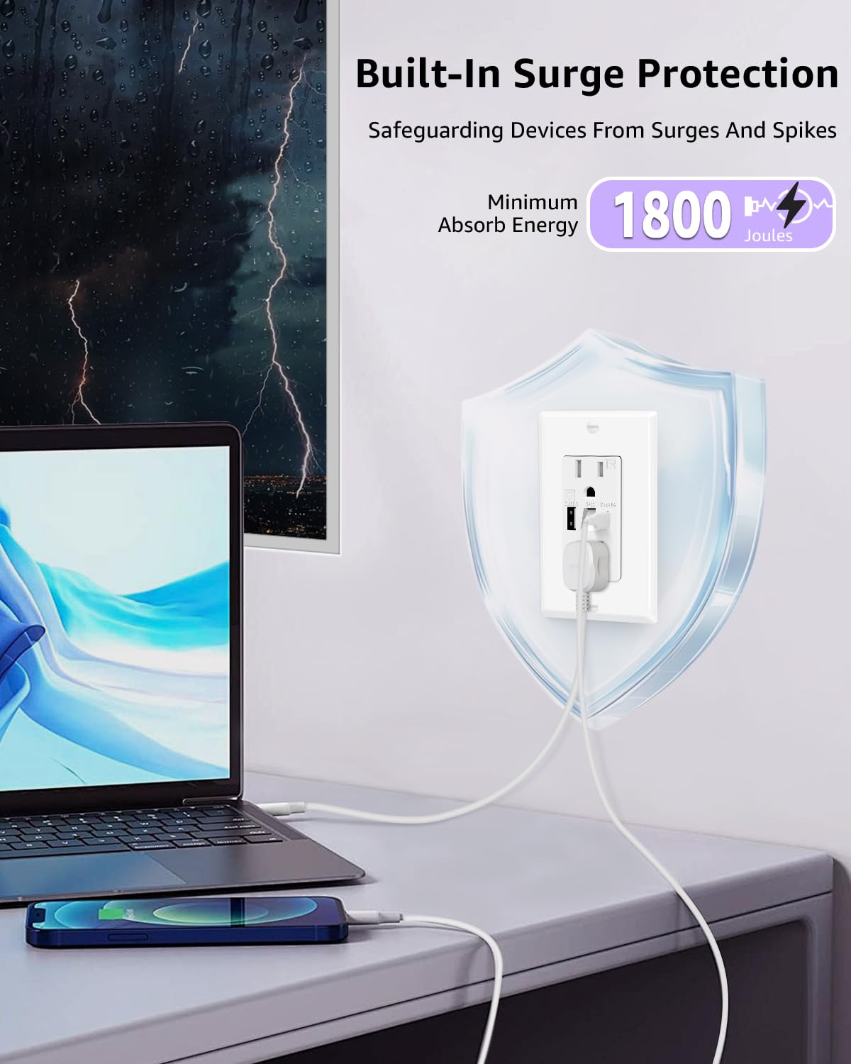 USB C Outlets with Night Lights Built in,Greencycle 1PK 15Amp High Speed Night Light Wall Outlet,4.8A USB A/C Ports Electrical Outlet Tamper-Resistant,Wall Plate Included for Home,Dorm Room+Remote Switch Outlet 2Sets, GreenCyle Outlet Plug with Remote, Wireless On/Off Light Switch Wall Mounted, 15A/1500W, TUV Listed, No Wiring Needed, 500ft RF Range, for Lamps, Fans, Household