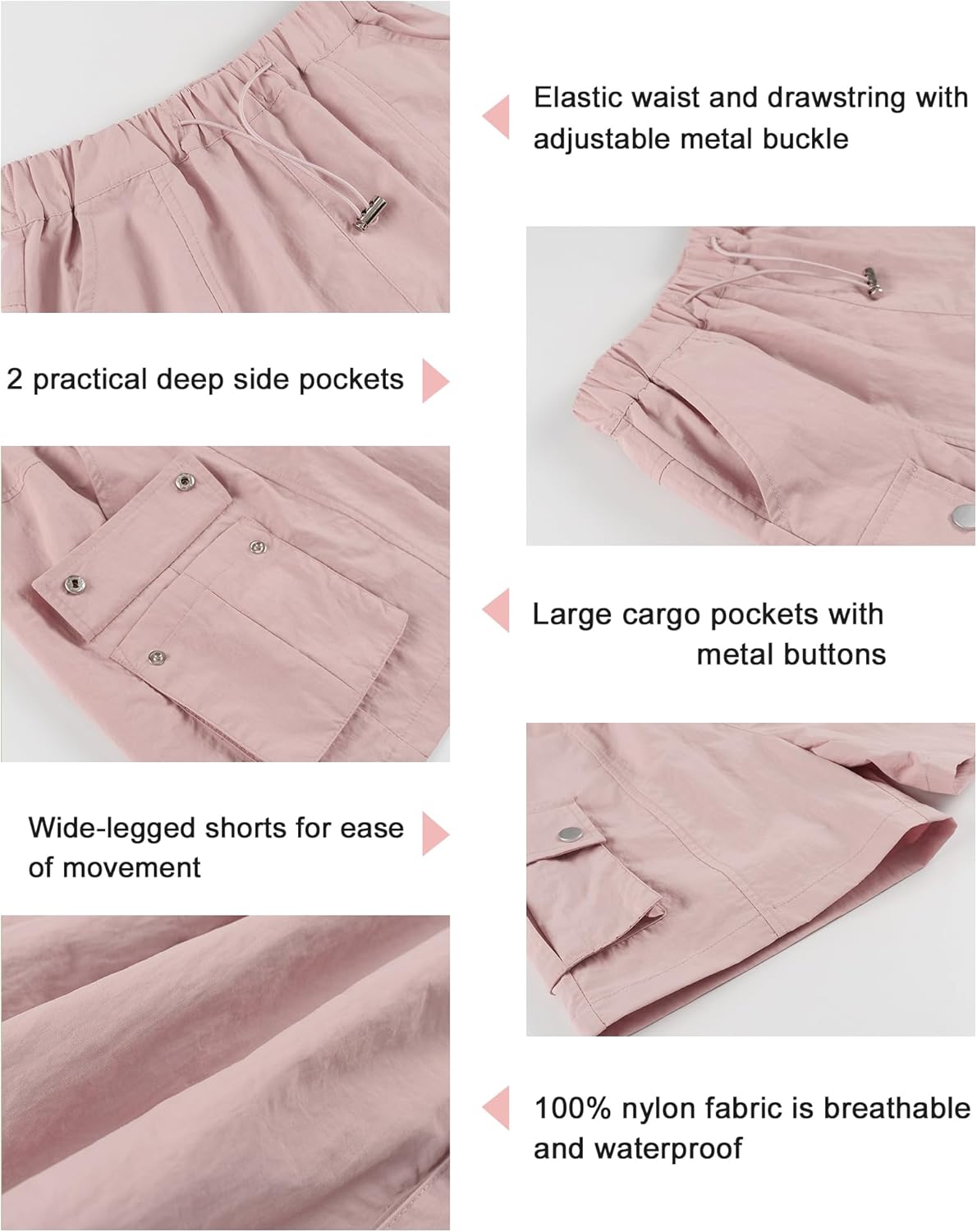 • 【Lightweight Fabric】: Rolanko girls cargo shorts are made of light quick dry and airy material, waterproof, breathable, its helps keep you feeling dry and comfortable to move around, material is a little “parachute” feeling, windbreaker type material shorts.