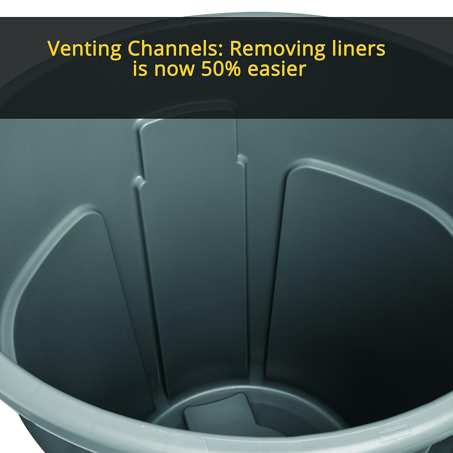 The BRUTE(r) 32 Gallon waste trash container features innovative venting channels which make lifting out liners up to 50% easier. The proprietary design constructed with the highest quality material plus a UV inhibitor ensures long life in even the most extreme commercial environments, guaranteed to never fade, warp, crack or crush. It improves productivity and reduces the risk of injury. The integrated cinches secure the liner, allowing for efficient knot free liner changes.