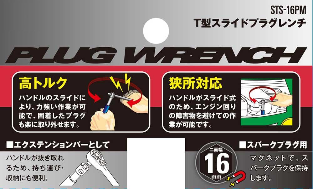 SK11 STS-16PM T Slide Plug Wrench for Spark Plug 16mm Double Face Width