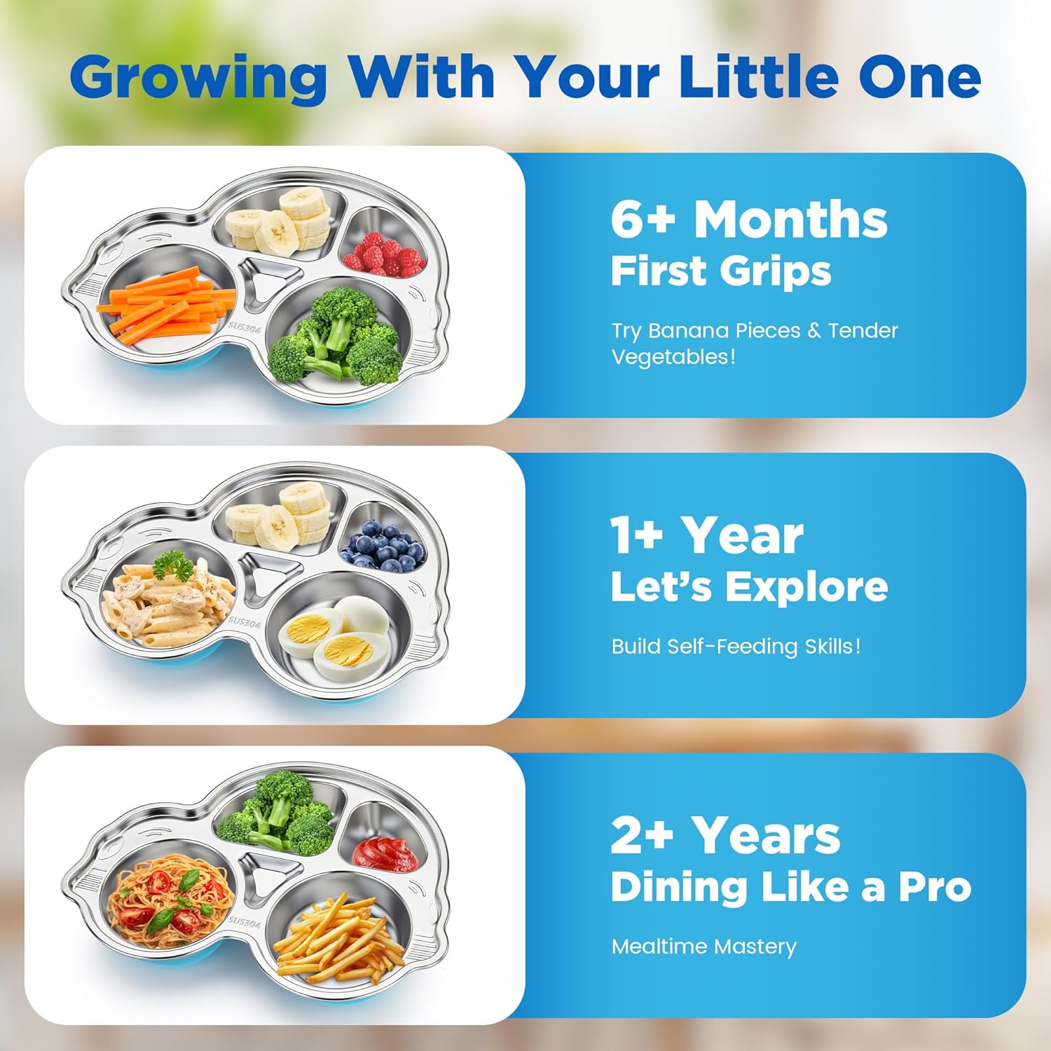 | Other Special Features of the Product | One-piece silicone base, Short-handled fingertip learning spoon |