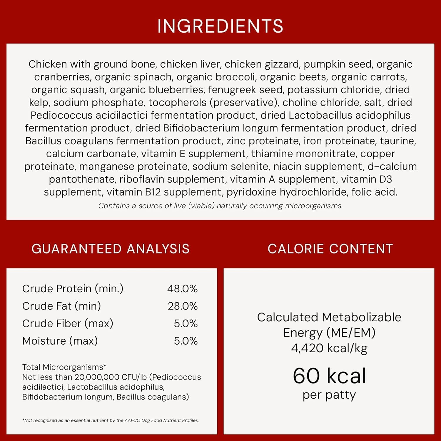 | Item Form | Freeze Dried Raw Patties |
