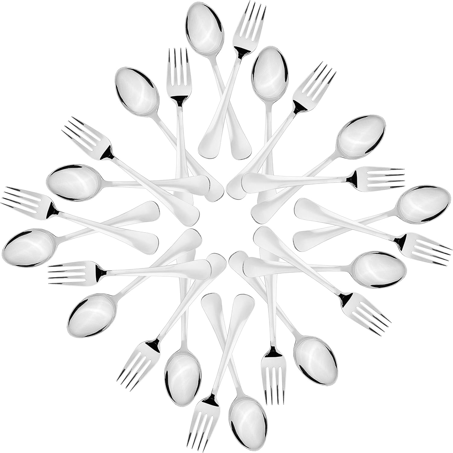Our motto is to reach people across the world through the beauty of utensils and continuing to bring products which are unique of elite quality, Royal in style . Now Make meals an elegant affair with well-designed, 100% Food Grade stainless steel cutlery. Add a touch of design to the table with practical, well-designed cutlery. It promises to delight any recipient. This collection includes a Set of 24 - 12 Dessert / Table Spoons and 12 Dessert / Table Forks. This Set is made of High-Quality Food Grade Stainless Steel which is resistance to Corrosion and non-reactive on food. Featuring Soft round edges and 1.6mm thick stem to ensure durability. It has multipurpose use and can be Pair with any Dining / Cutlery Set and Decor. Easy to clean and elegant design makes it suitable for everyday use. Our ranges will suit both basic and formal table settings. Due to its Unique design, it is comfortable in holding. Easy to clean and don t rust over time. Dessert / Table Spoon Dimension L x W X H (cms): 18.5 X4.2Weight 0.050g (Each)Dessert / Table Fork Dimension L x W X H (cms): 18.2 X 2.8Weight 0.033g (Each).