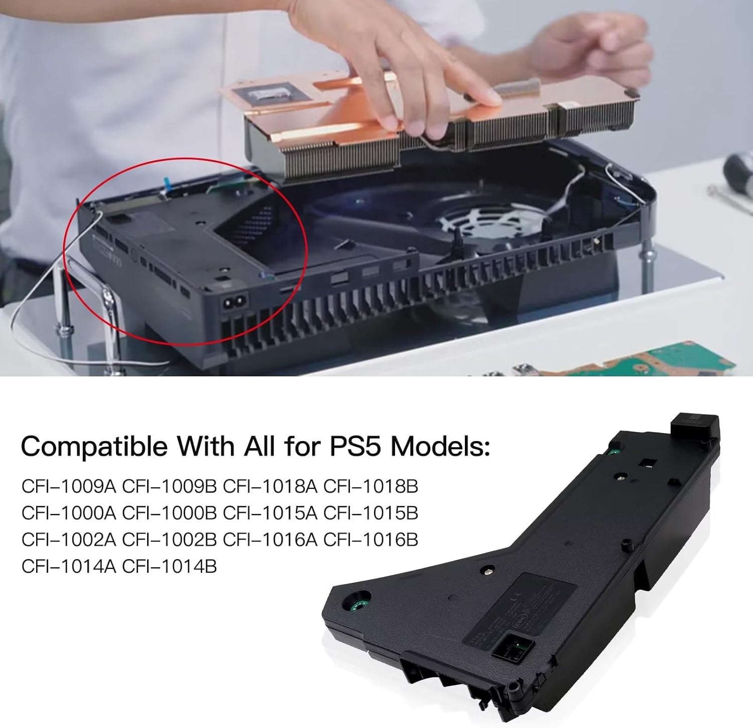 Description: Type: Power Supply Unit Color: Black Platform: for Sony Playstation 5 Made of high quality material Perfect fit for PS5 as a replacement for the old power supply Easy to install Compatible for All PS5 Models: CFI-1009A, CFI-1009B CFI-1018A, CFI-1018B CFI-1000A, CFI-1000B CFI-1015A, CFI-1015B CFI-1002A, CFI-1002B CFI-1016A, CFI-1016B CFI-1014A, CFI-1014B Note: Please open your FOR ps5 and check your power model to make sure it is correct Please make sure it's the problem of your power supply, and there is nothing wrong with your FOR ps console before order this item Package Includes: 1x Black Power Supply Unit