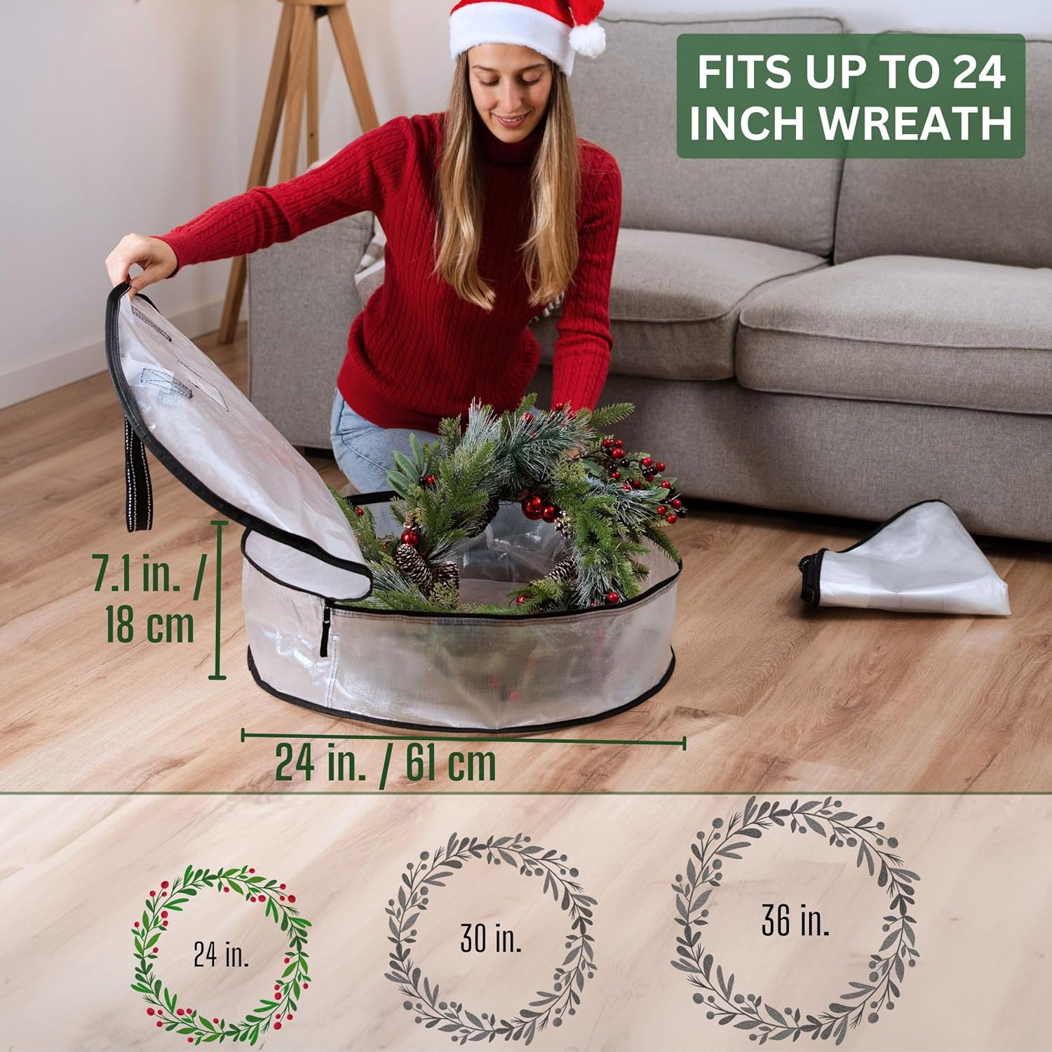 Keep your holiday decorations organized and protected year-round with our exclusive bundle! This set includes two 24" clear wreath bags, a spacious 7.5 ft Christmas tree storage bag, and a convenient gift wrapping paper storage solution. Each item is crafted from durable, clear material for easy identification and access. Perfect for maintaining the pristine condition of your festive gear!