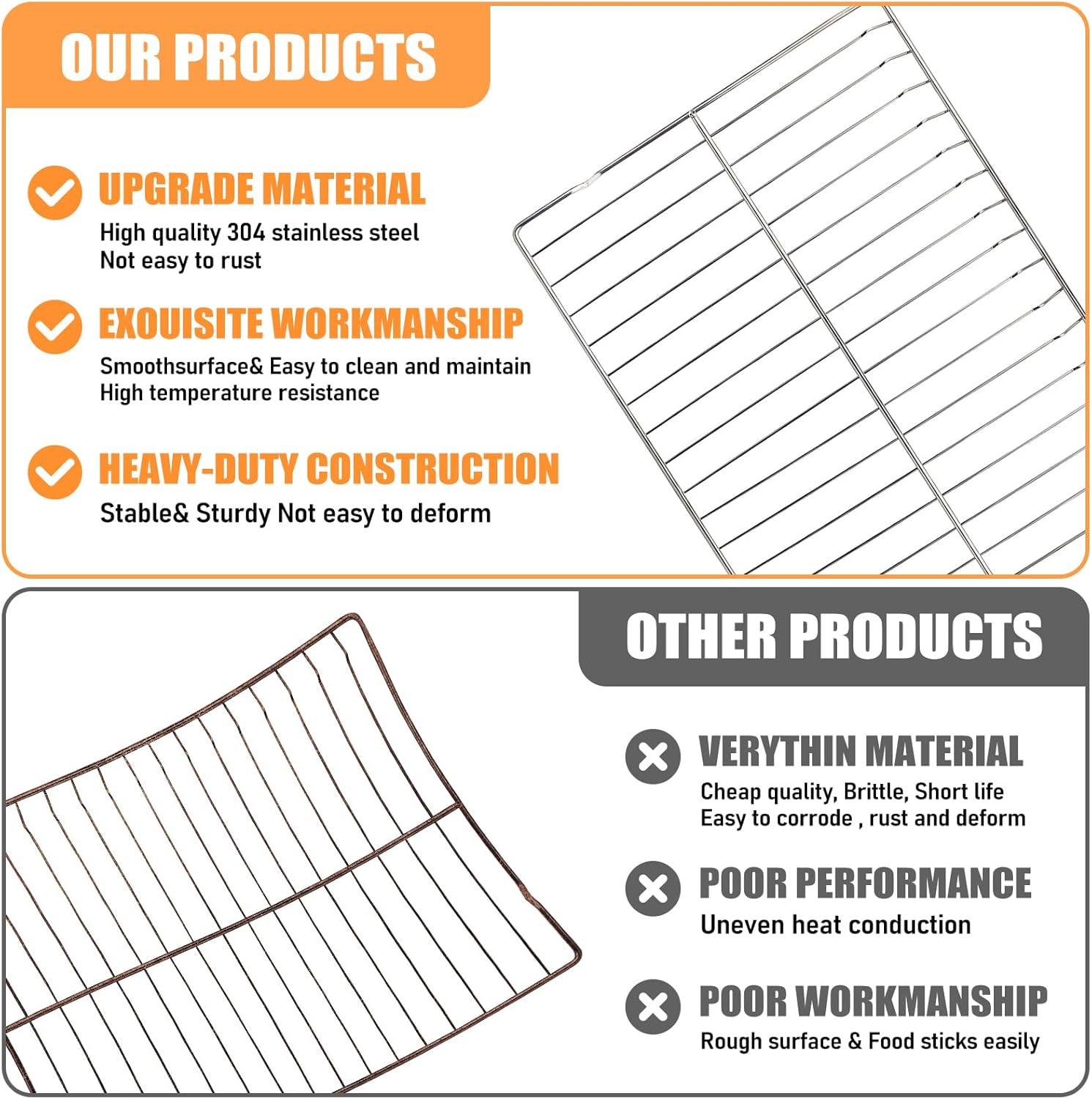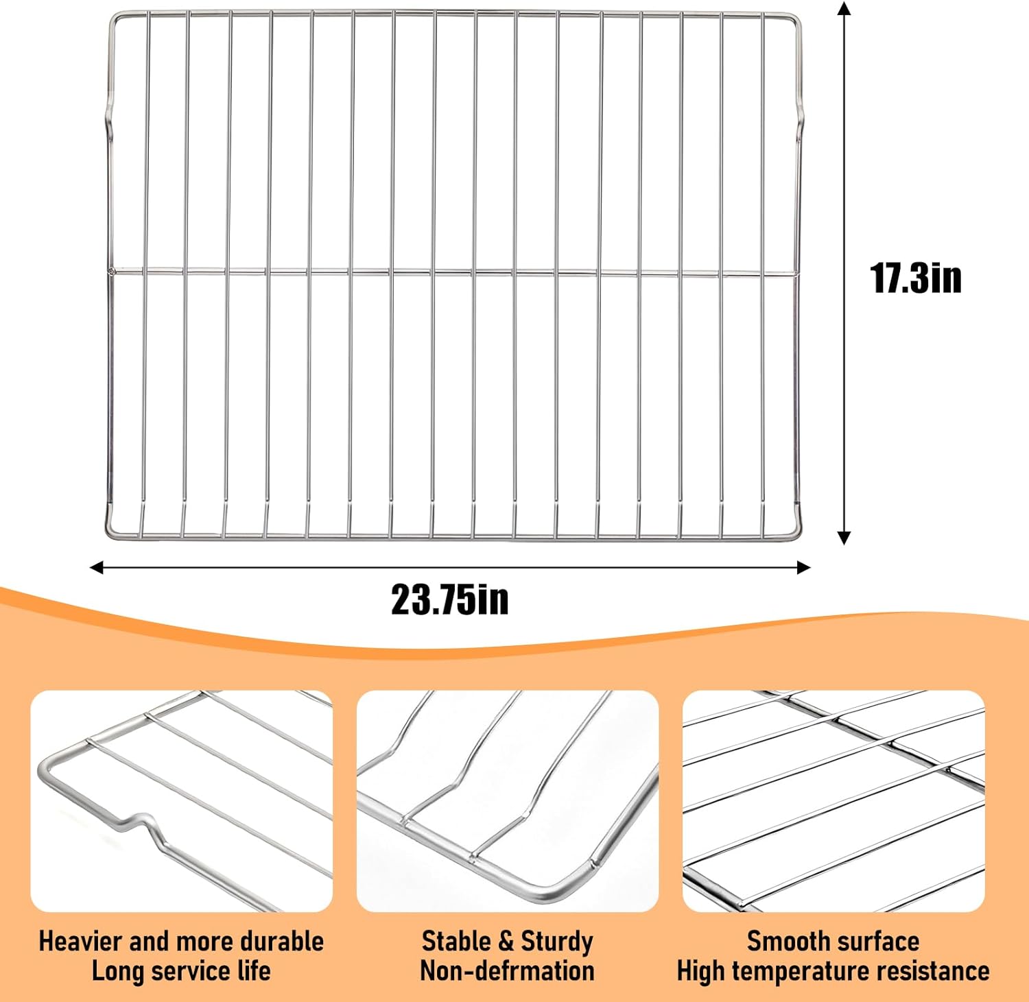 We use environmentally friendly material design, pollution-free, safe, hygienic, high-quality and highly durable 304 stainless steel material. This Part Fits Replaces Part Number WB48T10095,Replaces Part Number AP5665850, Replaces Part Number 2629419, Replaces Part Number PS6447646,Replaces Part Number WB48K0001, Replaces Part Number WB48K0003, Replaces Part Number WB48K0004, Replaces Part Number WB48K1, Replaces Part Number WB48K3, Replaces Part Number WB48K4, Replaces Part Number WB48K5019. Grills are not universal, many oven racks are similar but not compatible, so please make sure your oven and oven rack model match before buying. Item measures :L: 23.75" x W: 17.25" x H: 0.75". If you have any problems please kindly contact us by logging in your Amazon Buyer Account , Find your order and click Contact Seller we will respond you in one business day .
