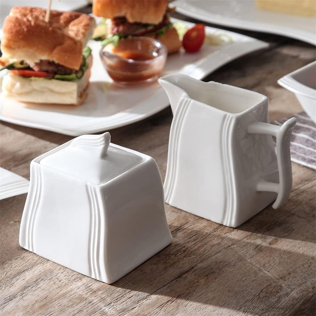 Simple and ceramic tableware that gives different lifestyle the same experience of pureness. Pick lovely and practical tableware for both your family and friends! Love life, start from Malacasa! White Porcelain Sugar and Creamer Pot Set. This Dinnerware set including 3-piece ivory white porcelain China ceramic sugar and creamer serving set. Elegant and timeless dinnerware for those special occasions when you dress your dinner table to perfection, yet always suitable for everyday use. Perfectly compatible with many cold & hot food without worry about chips, nicks, cracks, and scratches. Our outstanding dinnerware set can be cleaned easily and safely in the dishwasher, and you can use them directly in the microwave. Feature: Eco-Friendlys Material: Ceramic Package included: 2 X Sugar Pot notes: 1. Since manual measurement is required, please leave a space of 1-3 cm. 2. Due to screen differences, the color may be slightly different from your expected color, please allow. (Only sell main products, not other products) Please allow slight dimension difference due to different manual measurement.