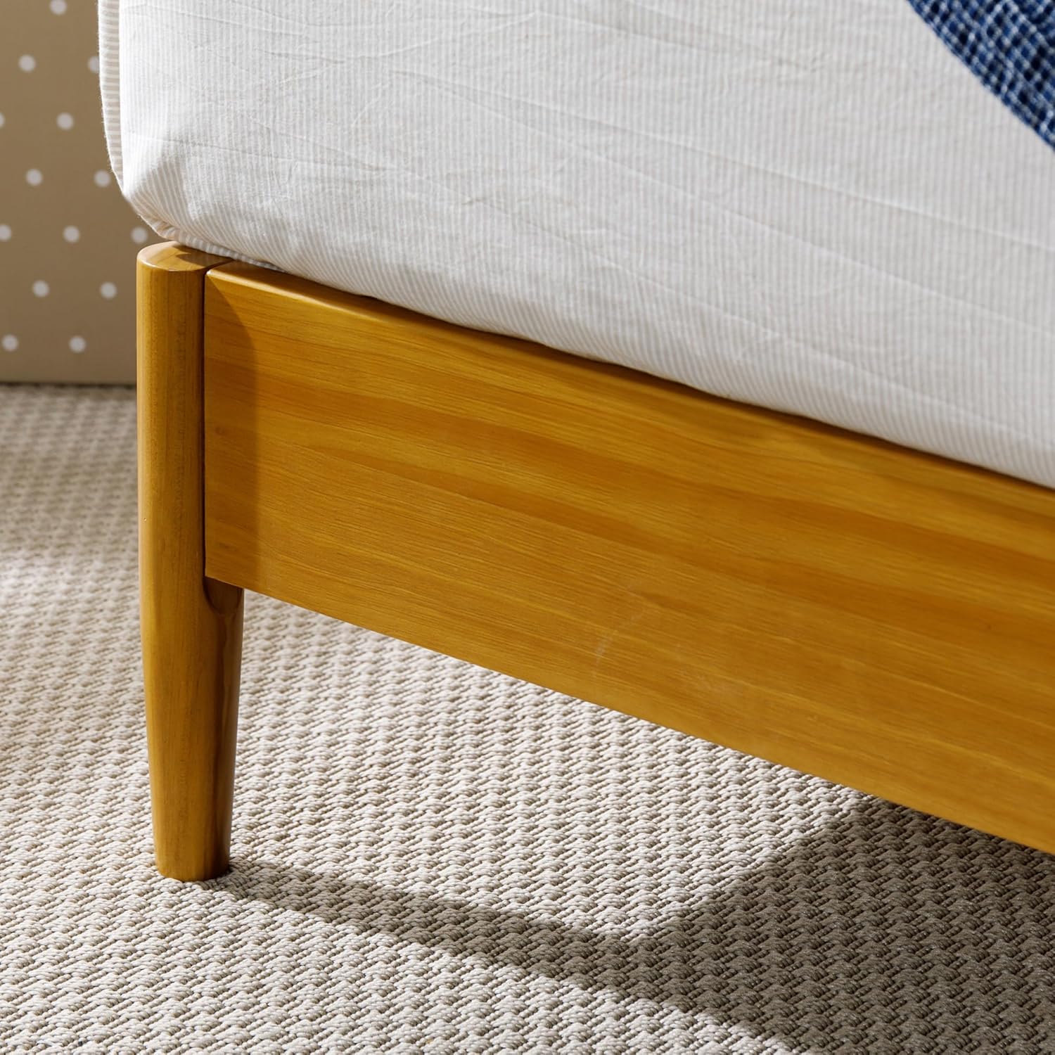 With a classic design, the Allen Mid Century Wood Platform Bed will make a simple statement as the focal point of your bedroom. This mattress foundation is a true mid-century wooden bed frame, with rounded legs and a sturdy headboard with an acorn finish that will easily complement any décor. This platform bed is built with a solid wood frame to support you and your mattress comfortably - no box spring necessary. The 12-inch platform has closely spaced wooden slats for extra stability to uphold and extend the life of your mattress, whether it’s spring, latex or memory foam. This classic bed frame is skillfully packed into one box and shipped to your door with all the tools, parts and step-by-step instructions needed to put it together without breaking a sweat. A 5-year warranty is also included to take all the stress out of this purchase. The perfect platform bed does exist in this beautifully crafted mid-century classic frame.